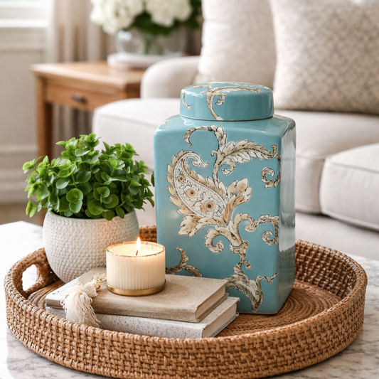 Azure Paisley Luxury Ceramic Ginger Jar with Lid