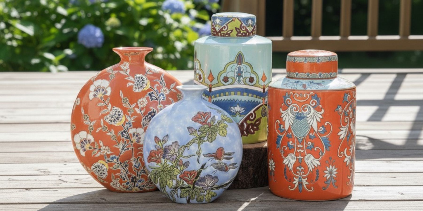 Regal Lotus Harmony Hand-Painted Ceramic Jar