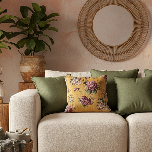 Yellow Floral Velvet Cushion Cover 16 x 16