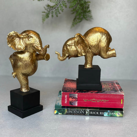 Cute Gold Elephant Figurines - Set of 2