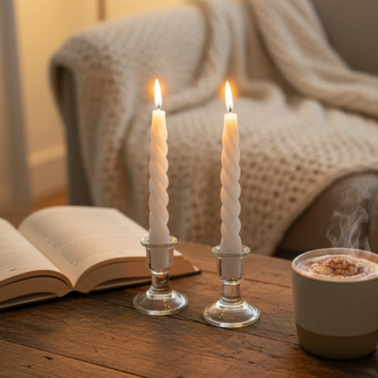 White Vanilla Twisted Taper Soy Candle 7inch - Set Of 2