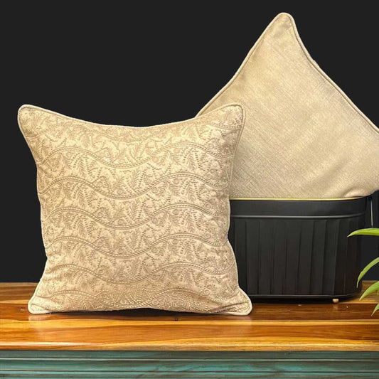 Antique Silver French Embroidery Waves Cushion Cover 16 x 16