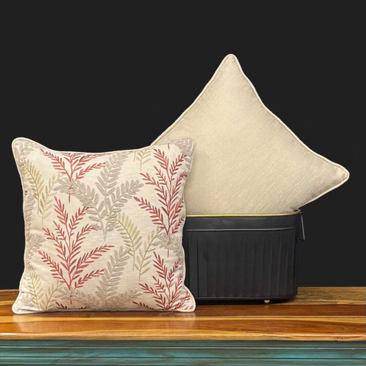 Red/Beige Leaf Embroidery cushion cover 16 x 16