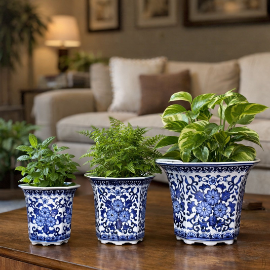 Blue And White Porcelain Floral Round Planter