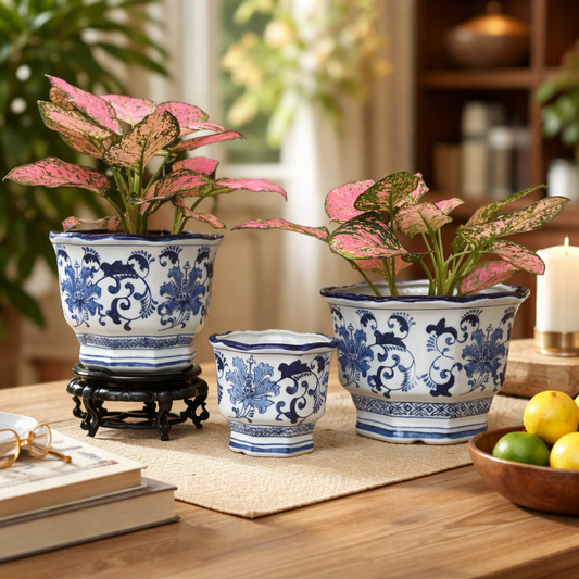 Blue And White Hexagonal Ceramic Planter