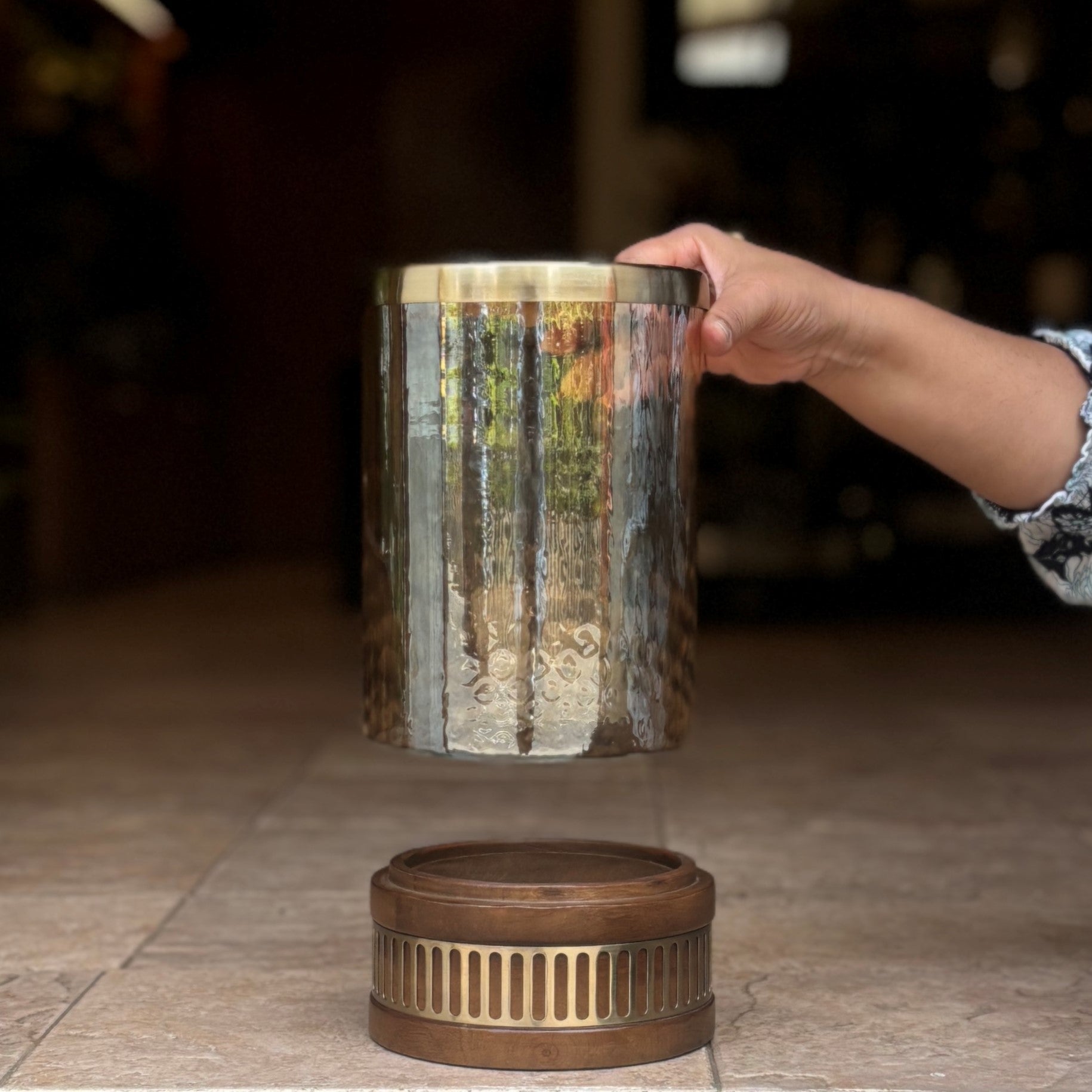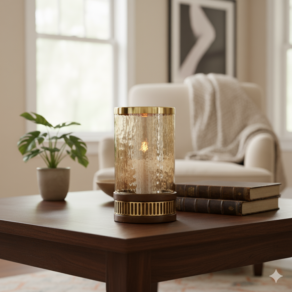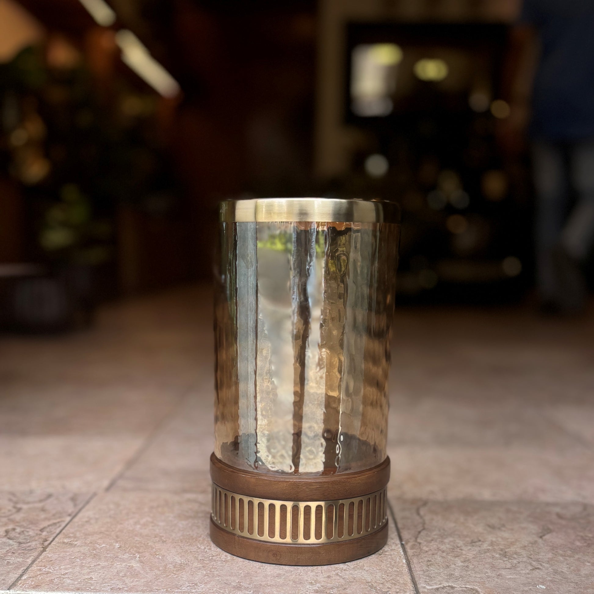 - Elegant and sophisticated: With its stunning hardwood base and sophisticated amber glass hurricane, this piece effortlessly combines natural components with contemporary design. Its elegant form and warm colors make it the ideal focal point for any space, while its strong base guarantees stability on tile floors and other surfaces. This hurricane elevates your home's decor and is perfect for displaying candles, flowers, or as a stand-alone decorative piece.