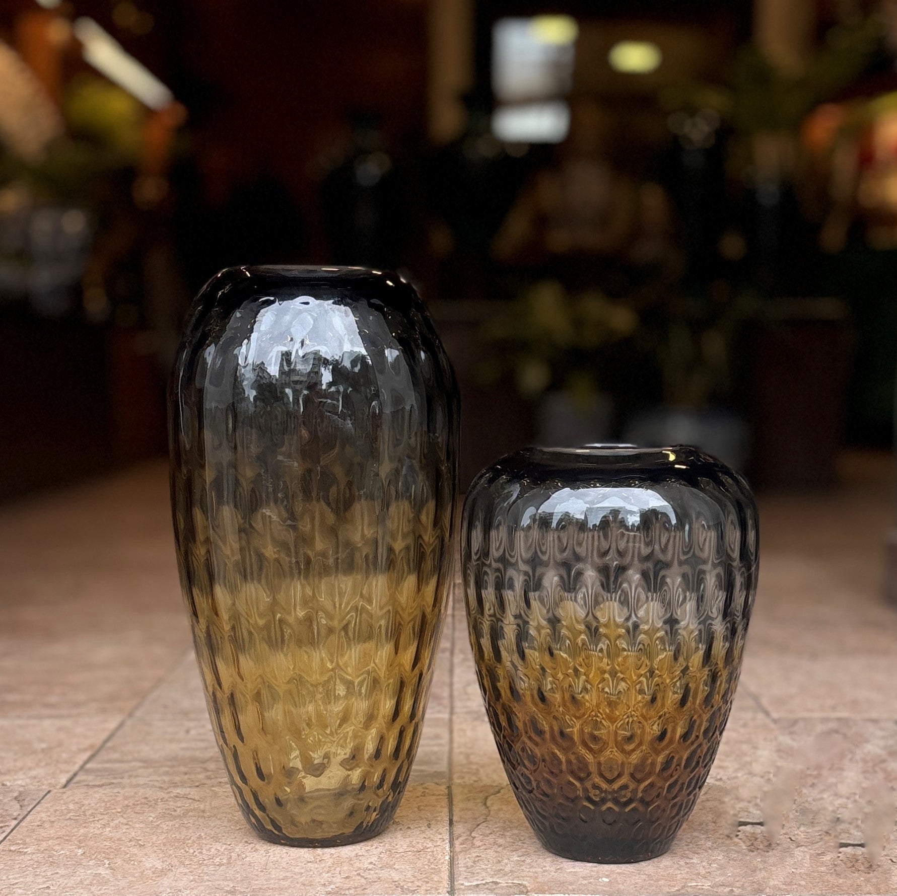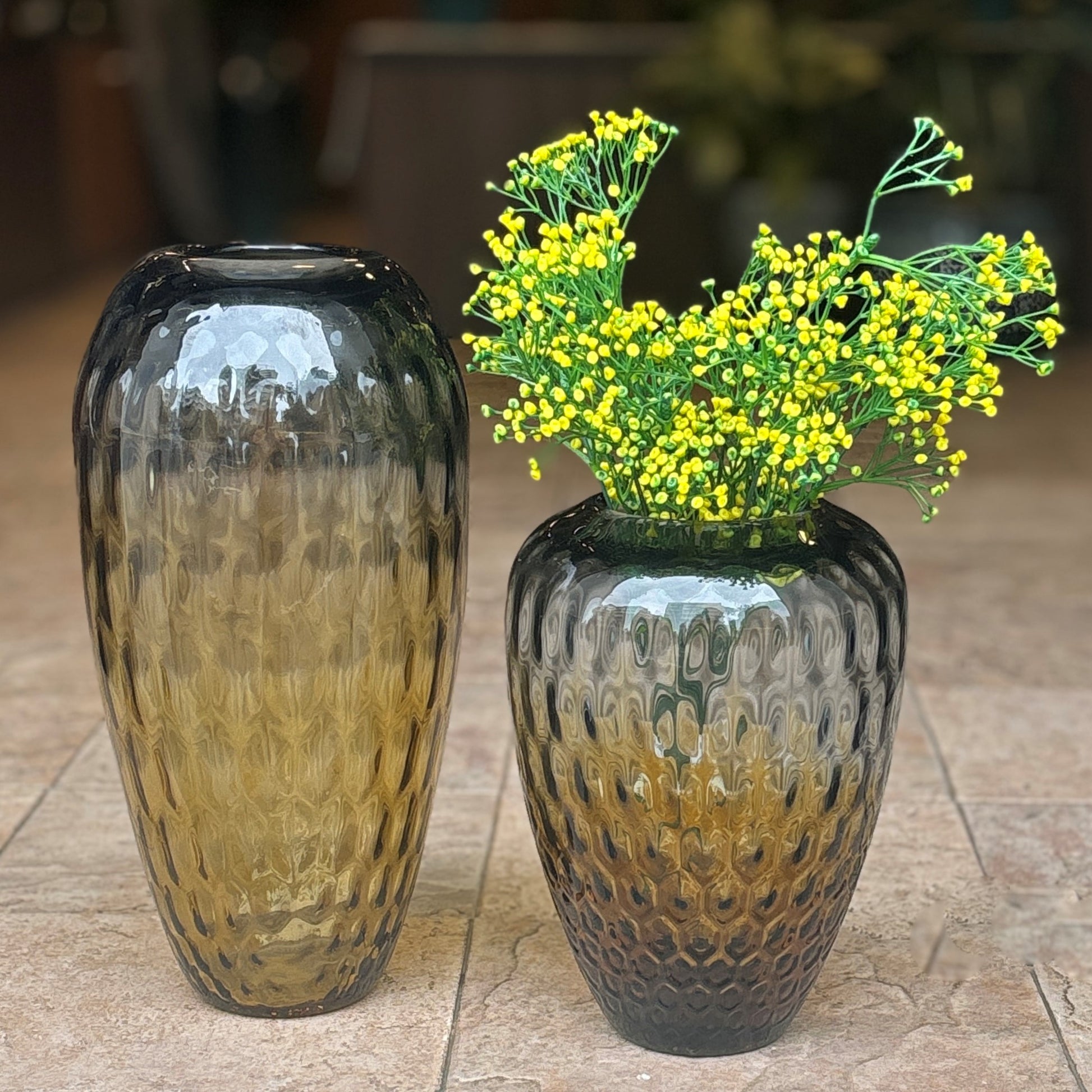 - Artistic Addition: Discover the allure of our stunning Amber Thick Glass Vase, the subtle amber tint on the glass vase makes colorful blooms look beautiful while brightening up the home decor. Available in two distinct sizes, this vase seamlessly blends aesthetics and functionality, adding a touch of sophistication to your space.