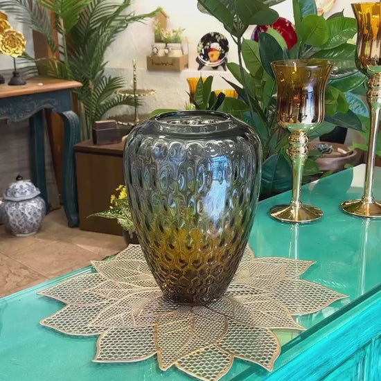 - Artistic Addition: Discover the allure of our stunning Amber Thick Glass Vase. The subtle amber tint on the glass vase makes colorful blooms look beautiful while brightening up the home decor. Available in two distinct sizes, this vase seamlessly blends aesthetics and functionality, adding a touch of sophistication to your space.