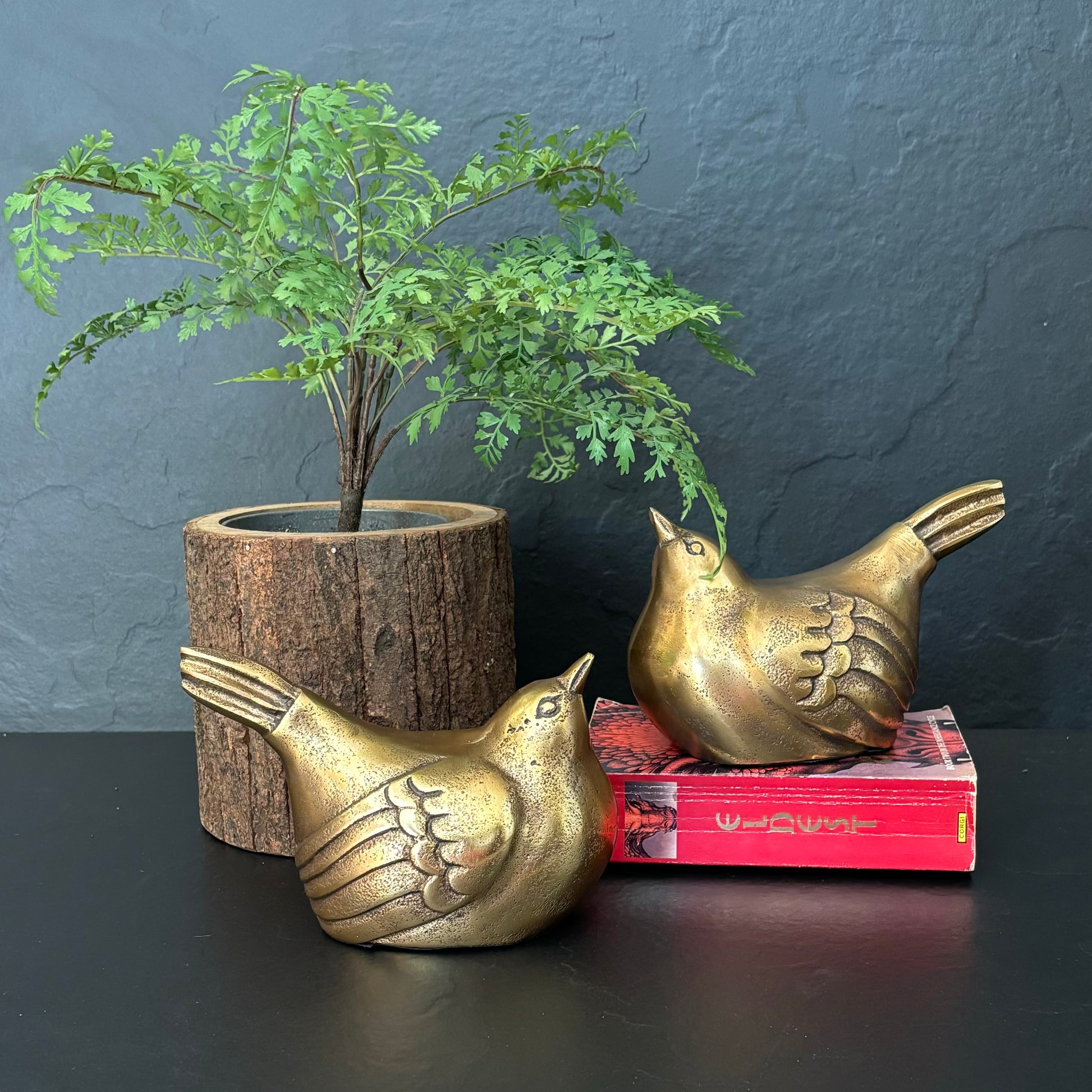 - Cheerful accent: Enhance your home decor with this exquisite gold metal bird. Elegantly crafted in metal, these charming sculptures add a touch of sophistication and warmth to any space. Their intricate detailing and antique finish make them a perfect accent piece and addition to modern decor.