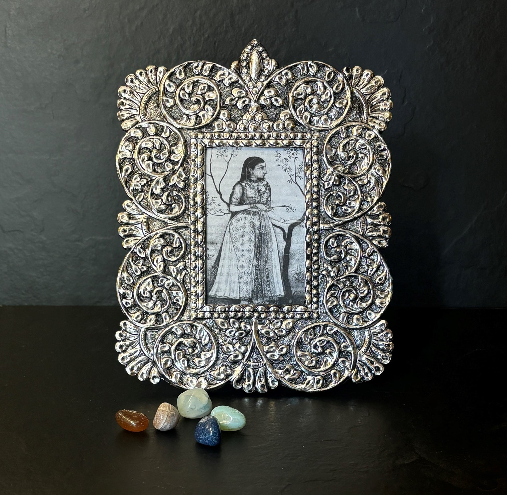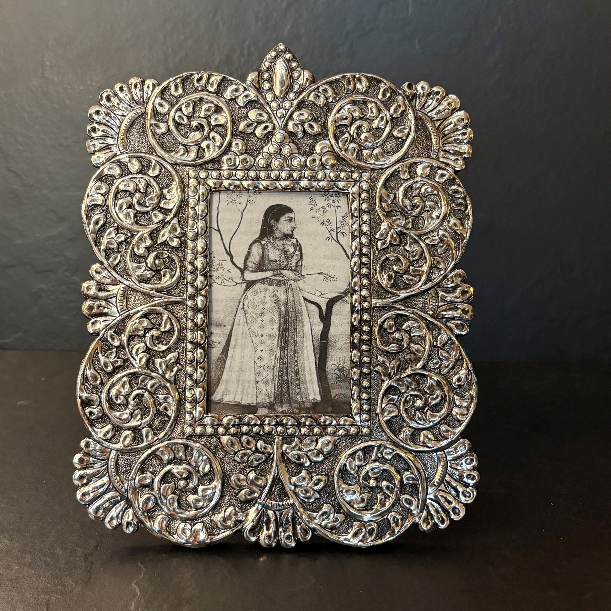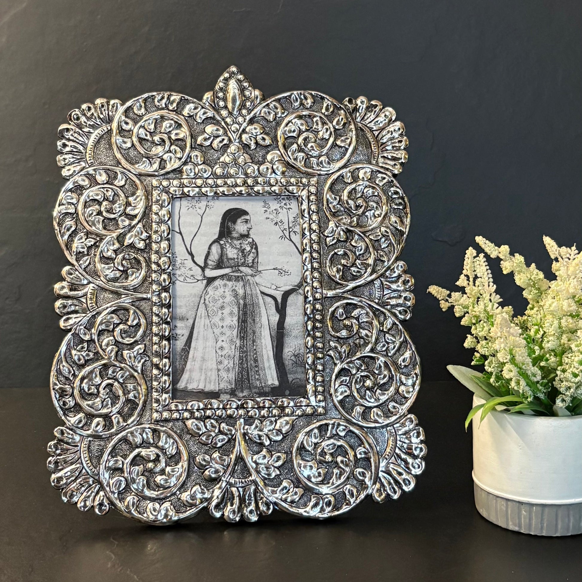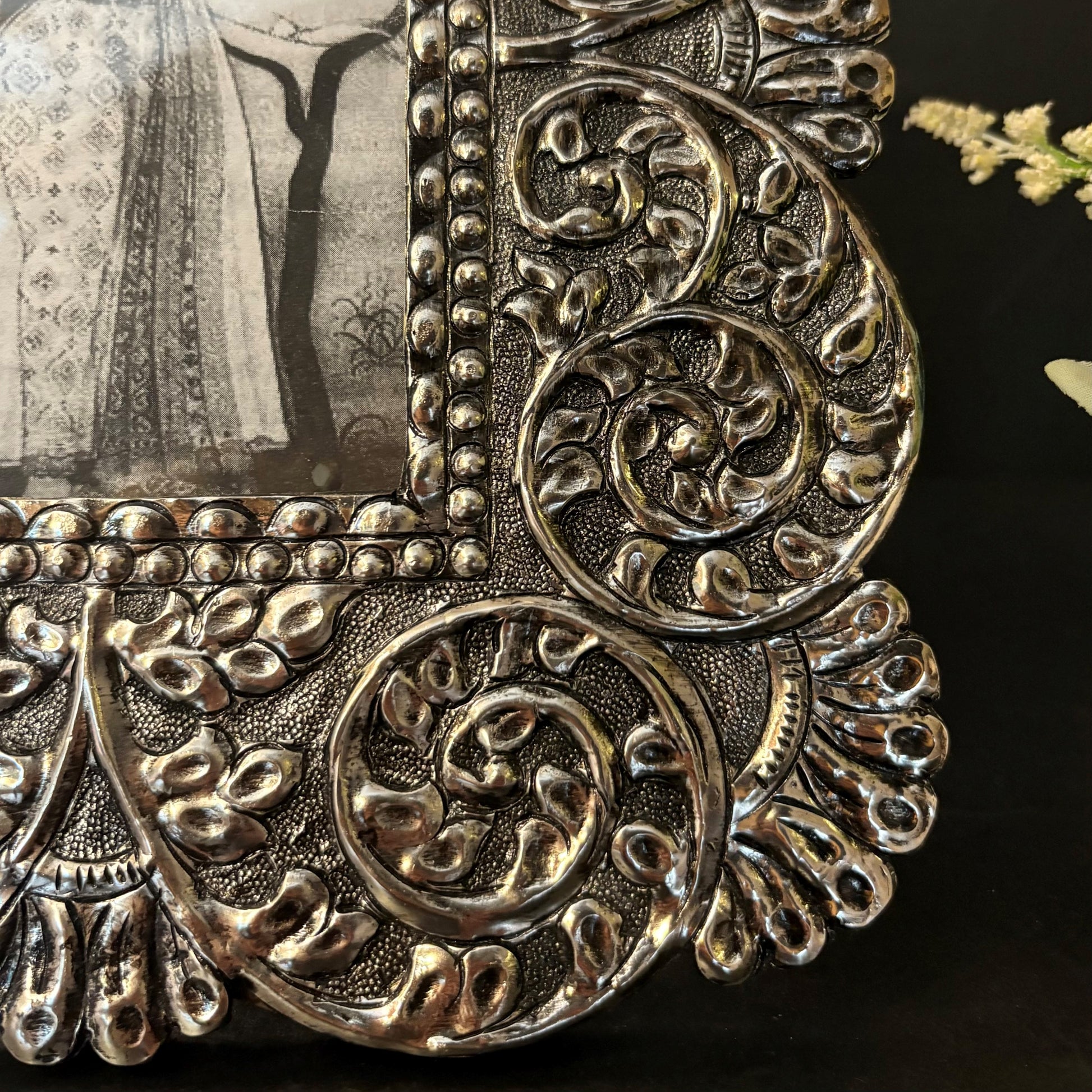 - Display your favourite memories: Your most cherished memories deserve a frame as unique as the moments themselves—one that lets you relive them for years to come. Expertly handcrafted by skilled artisans, this photo frame features an antique silver finish adorned with intricate floral and paisley motifs, delicately embossed using time-honored hand-hammering techniques. Its ornate border exudes regal, vintage charm, enriched by a weathered finish that echoes the elegance of a bygone era.
