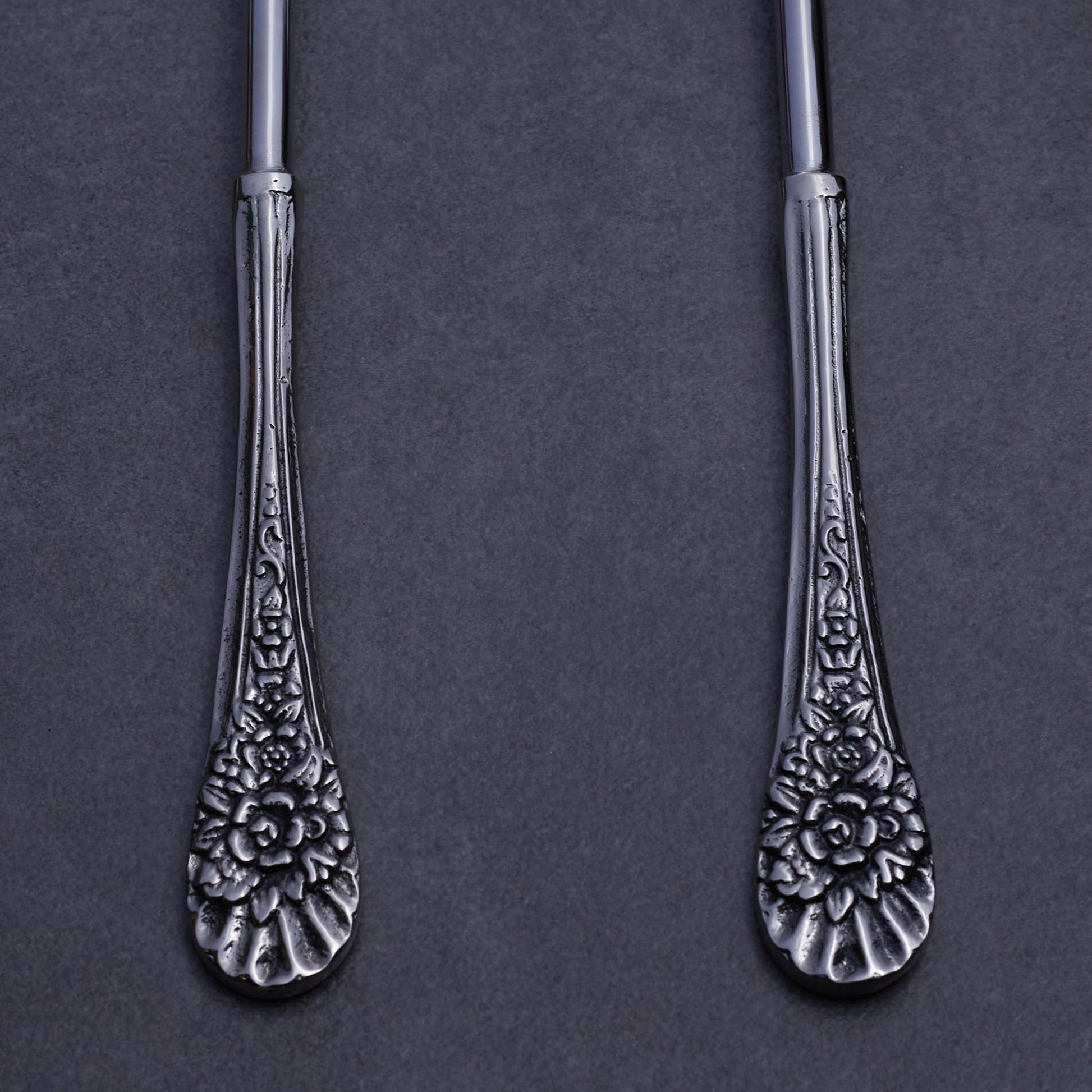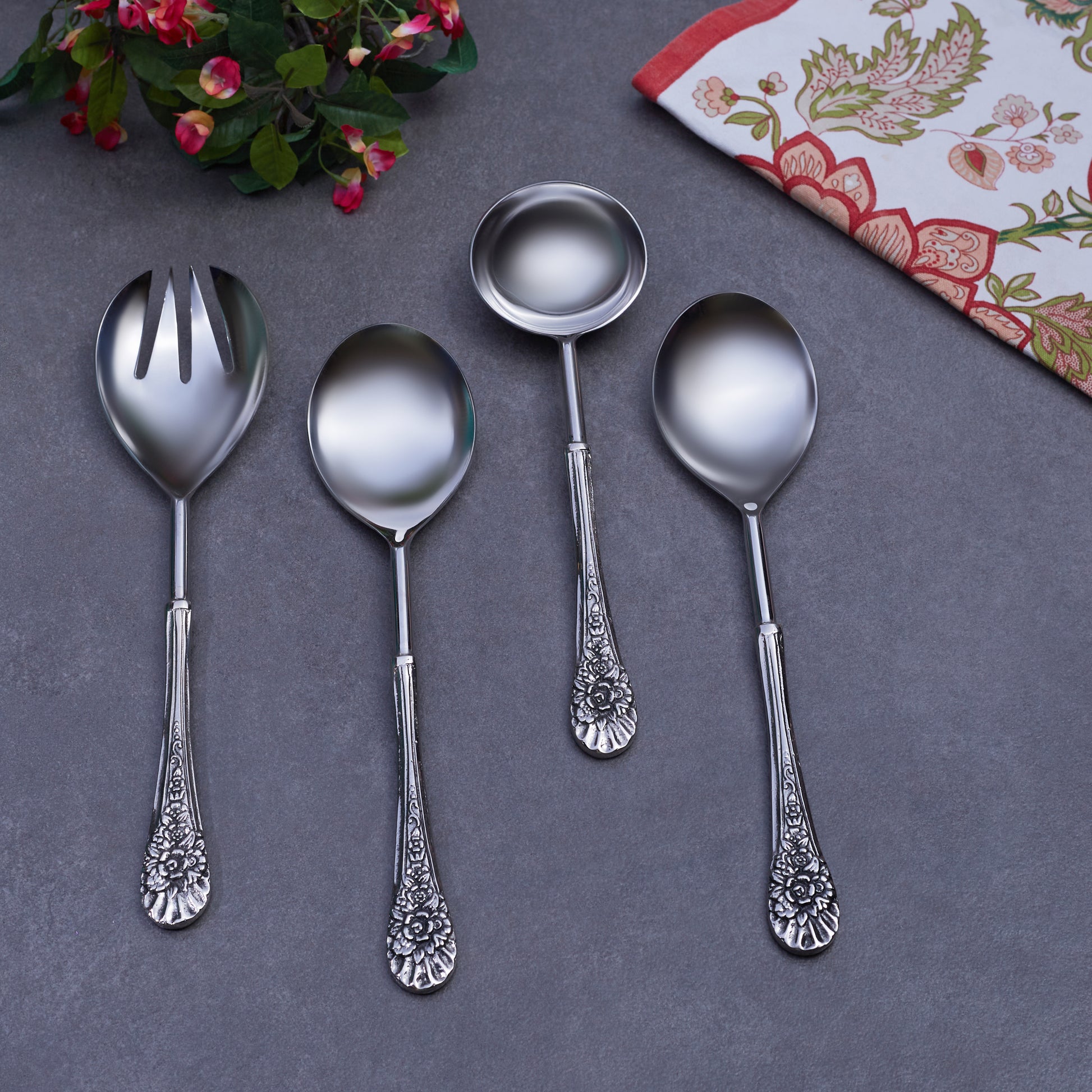 - Impress your guests: Designed on heritage silver cutlery, the graceful brass handles of our Silver Antique Serving Cutlery have plenty of vintage glamour.