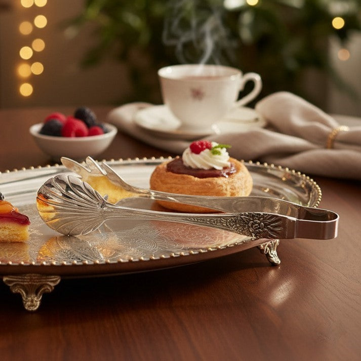 - Exquisite workmanship: Enhance your dining experience with our Antique Silver Serving Tong – a must-have serveware accessory for any style-conscious host! Handcrafted with precision, this heritage cutlery showcases intricate detailing and exquisite craftsmanship. Whether you're tossing a salad or elegantly serving hors d'oeuvres, these tongs provide both functionality and elegance. Elevate your dining table with the Antique Silver Serving Tong and create a truly memorable dining experience.