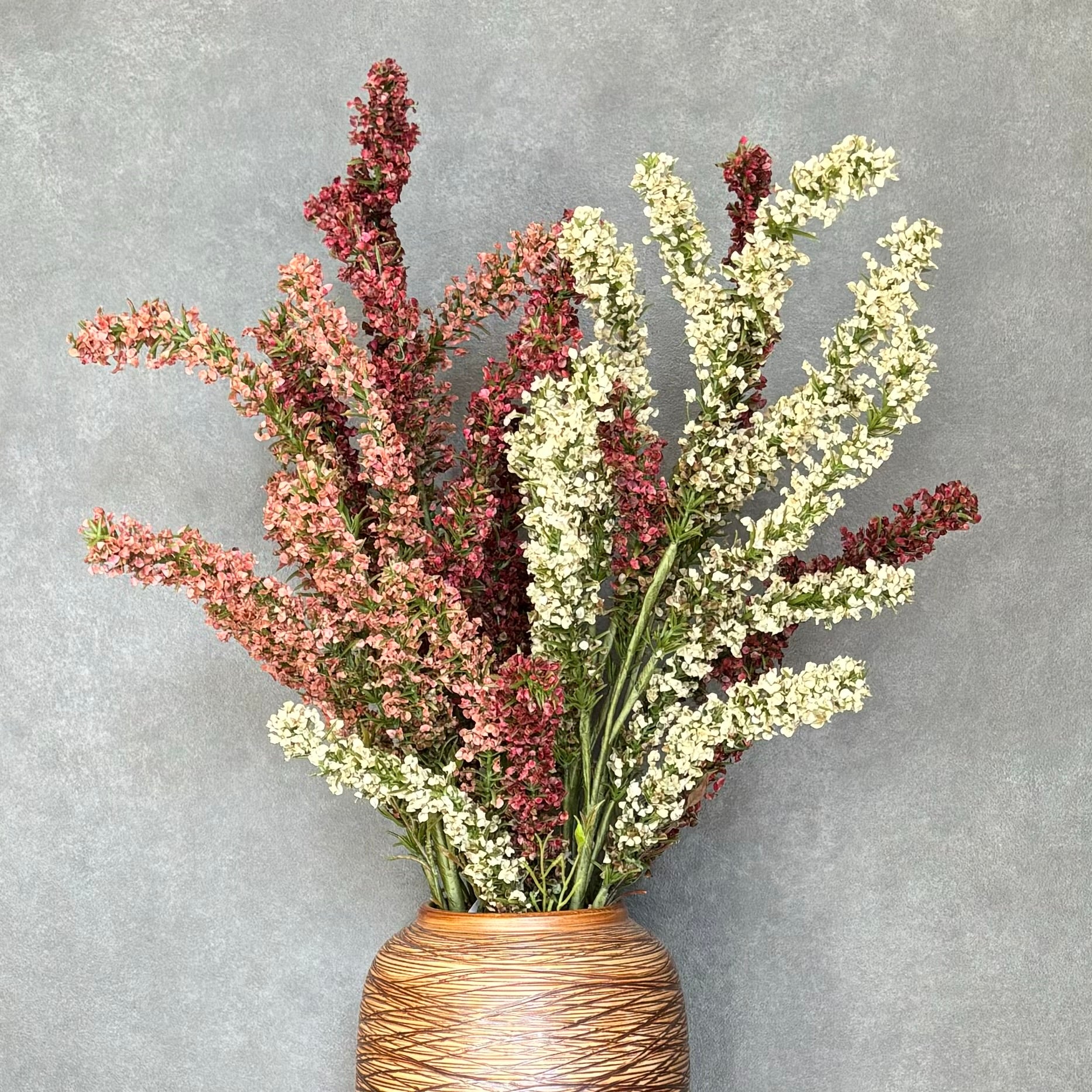 - Flexible stems: The wire inside the bunch allows you to gently bend it in a natural-looking fashion after you have placed these in your display vase or planter.