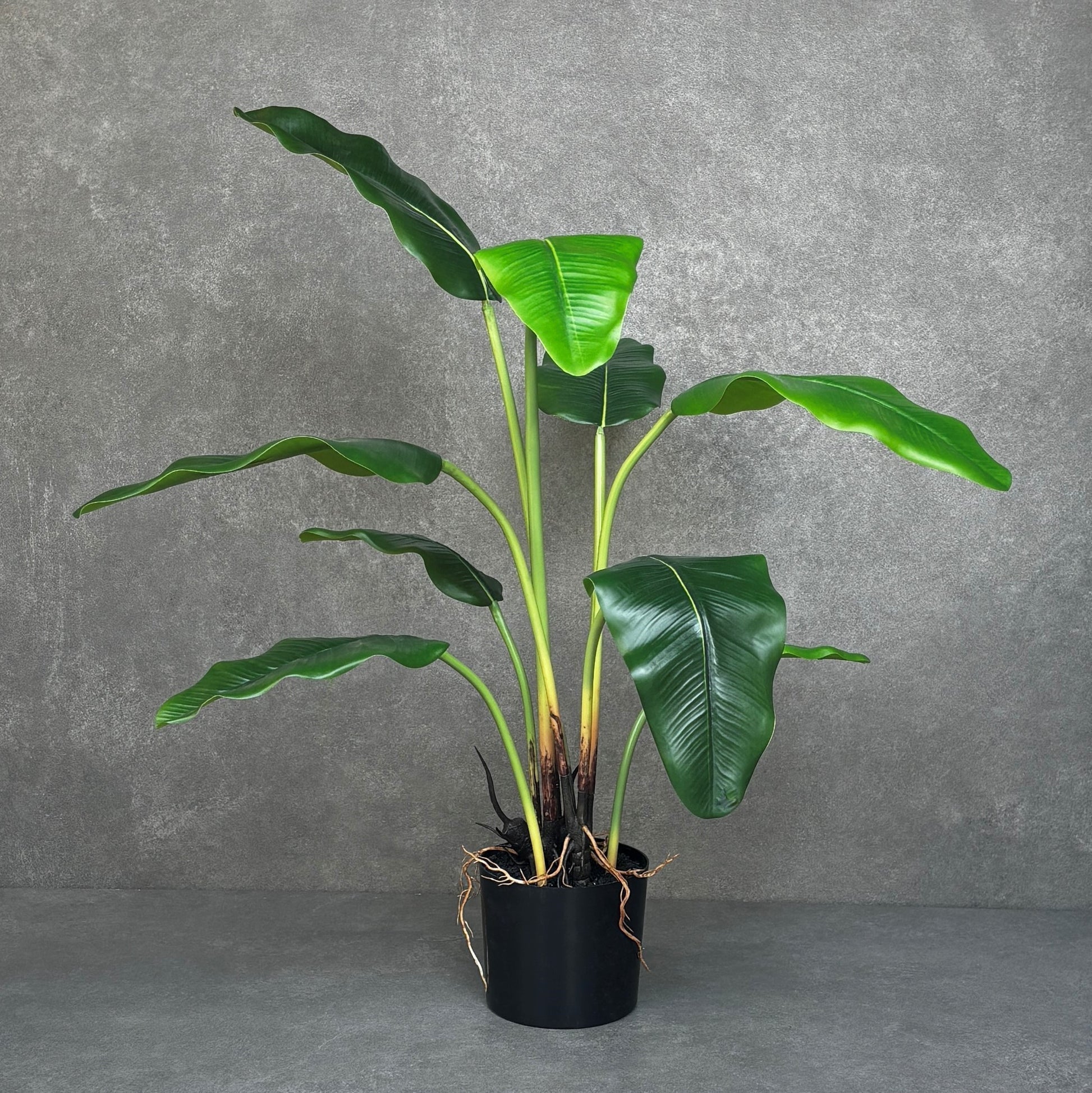 - Place it in a planter of your choice: This artificial banana leaf plant will reach you with a black plastic pot. You can display it in any attractive planter. View all our Planters here.