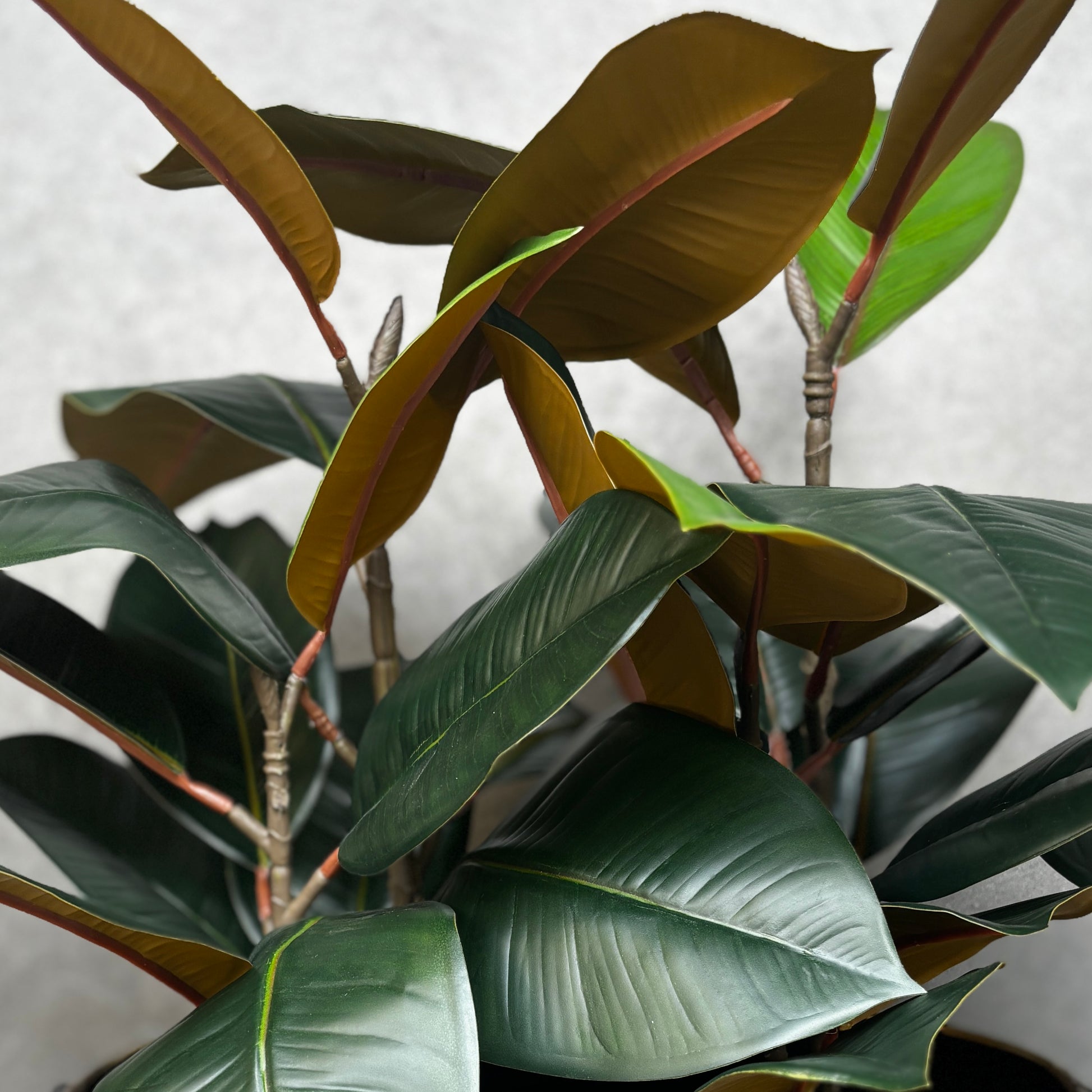 - Green decor: This artificial rubber plant along with its realistic leaves is a replica of a life-like rubber plant and an excellent decor piece for an office or home. The plant has a near-natural appearance where you can clearly see the detailed texture and veins of each leaf.