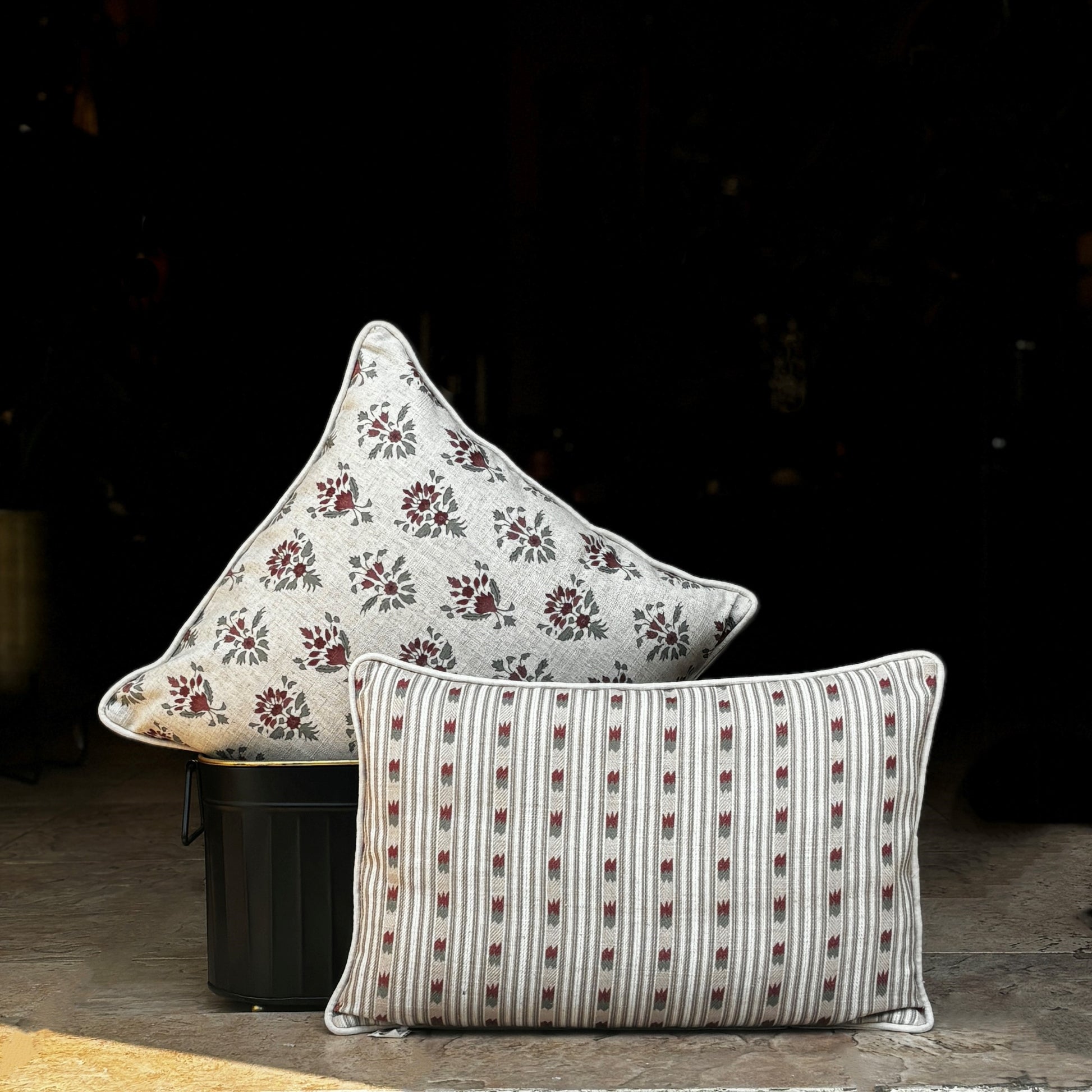 - Pair it with: For double the elegance, combine it with our Beige Stripe Linen Cushion Cover 18 x 18 And Floral Motif Linen Cushion Cover 16 x 16