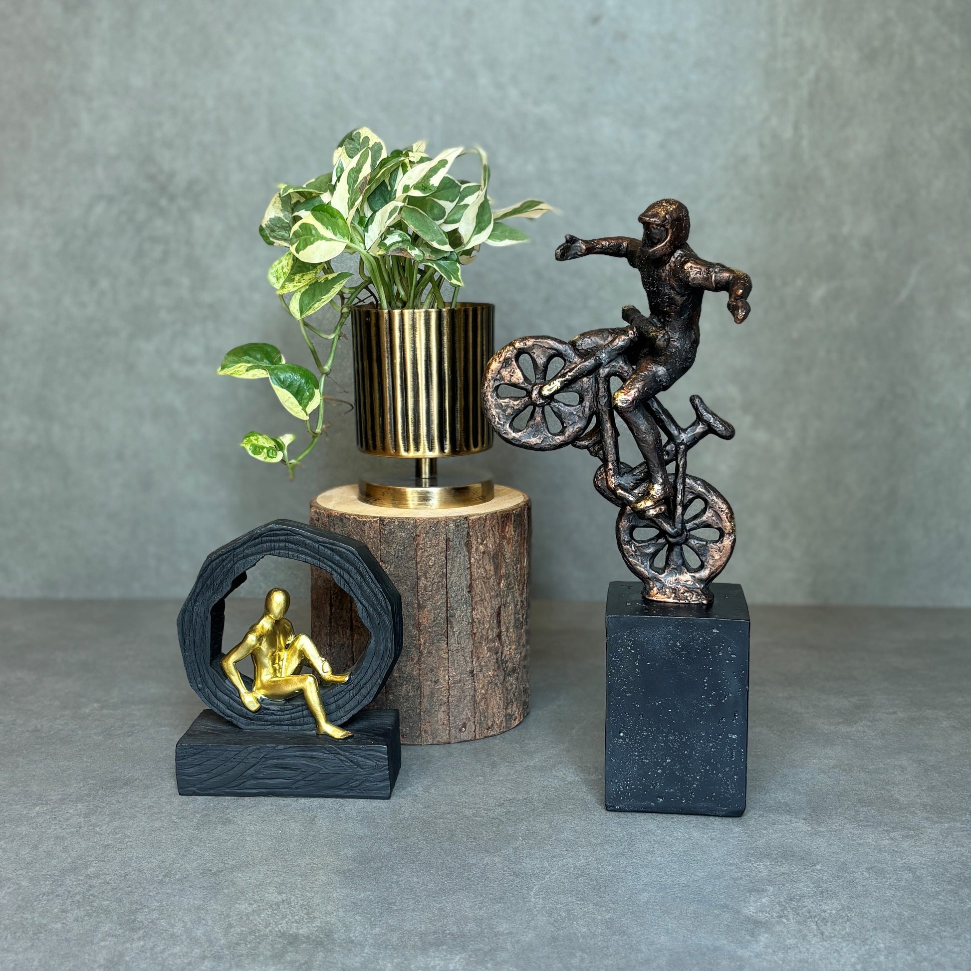 - Remarkable art piece: Enhance the charm of your living space with our exquisite Bicycle Man Sculpture. Perfect for home, office, studio, or living room decor, this sculpture adds a touch of elegance and sophistication to any indoor setting.