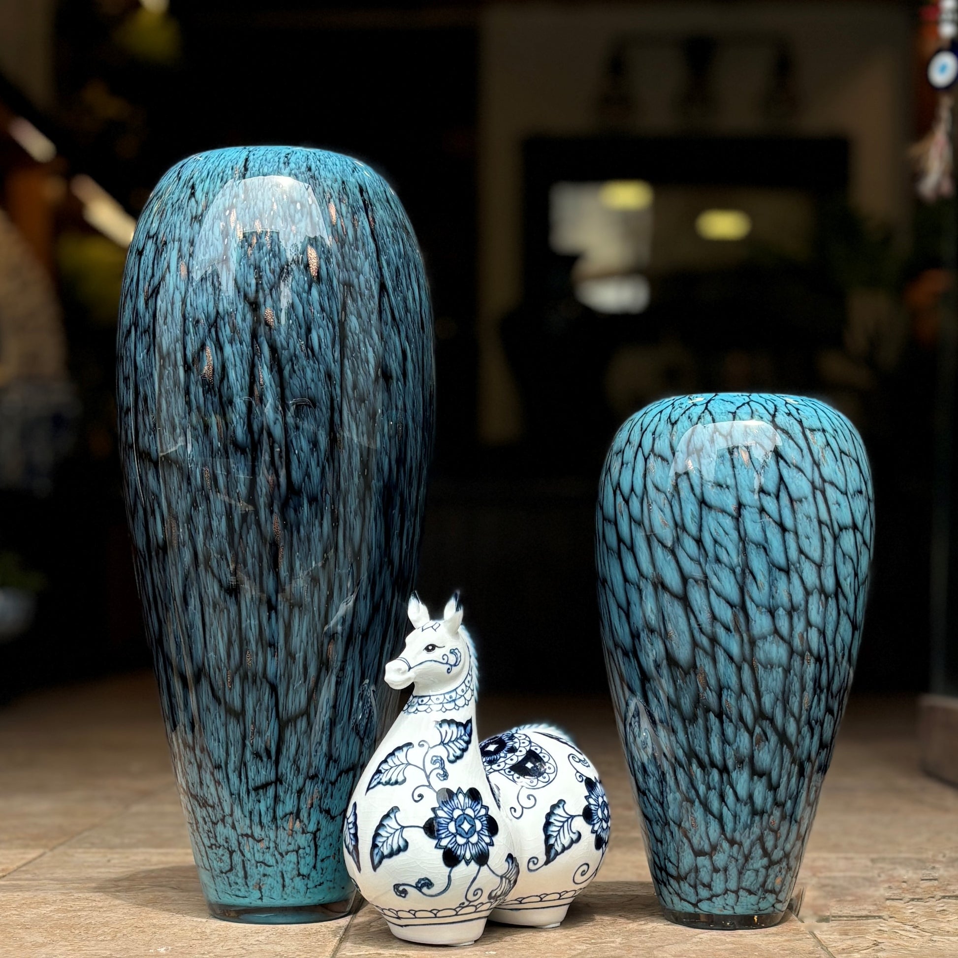 - Artistic Addition: Classic and serene with an exquisitely refined pattern, the Blue Glass Vase evokes a timeless elegance that will never go out of style. It is sure to add a special, elegant touch to your decor space that will complement virtually any color scheme with a graceful style.