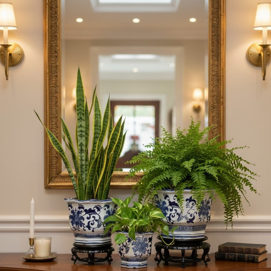 - Tabletop accessory: These lovely Blue & White Hexagonal Planters have a deep shape to fit a variety of plant sizes inside. It is the perfect tabletop accessory for any indoor or outdoor space.