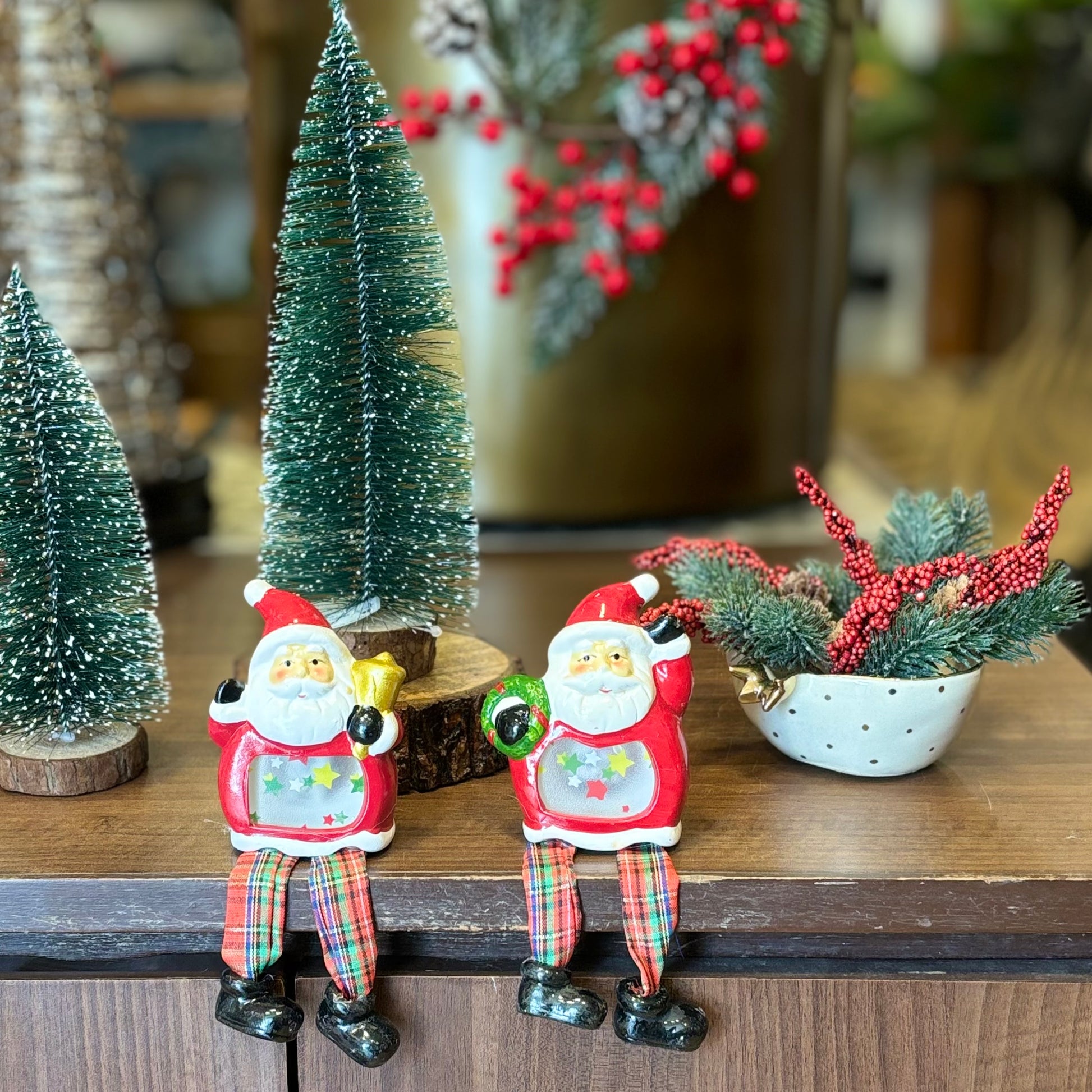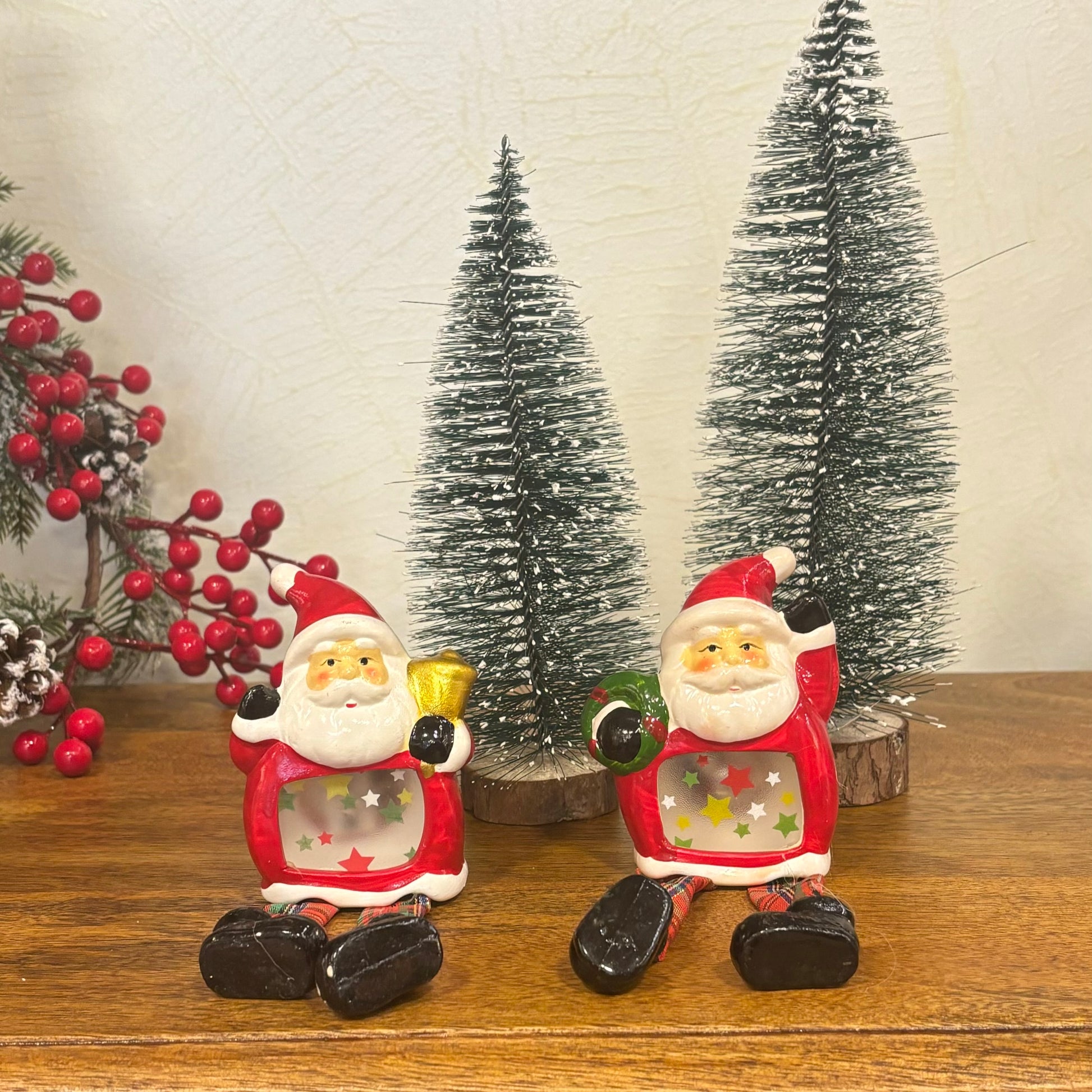- Playful touch: These charming santa clauses with hanging legs add a playful and unique element to your seasonal decorations. Crafted with meticulous attention to detail, each pair is carefully designed to capture the whimsical spirit of Christmas.