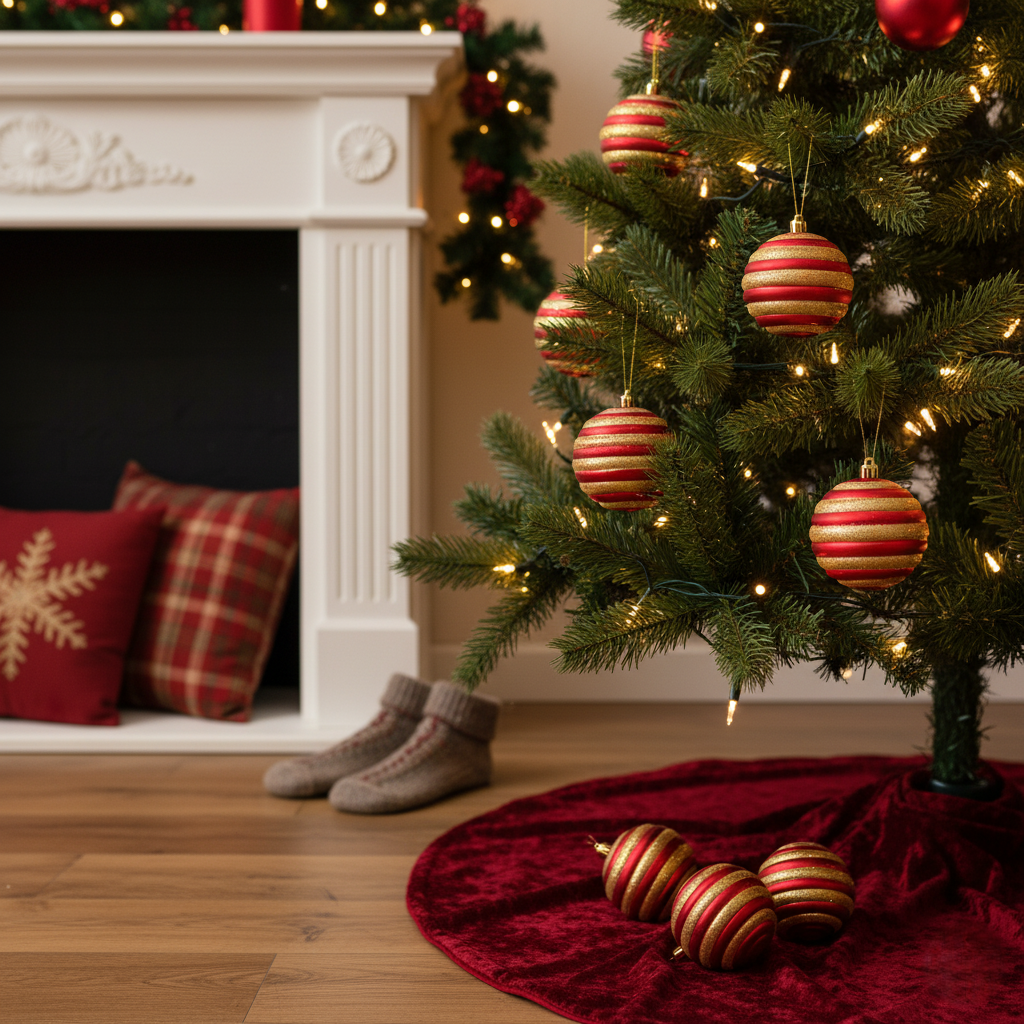 Christmas Tree Decoration-Pack of 6 Red & Golden Balls