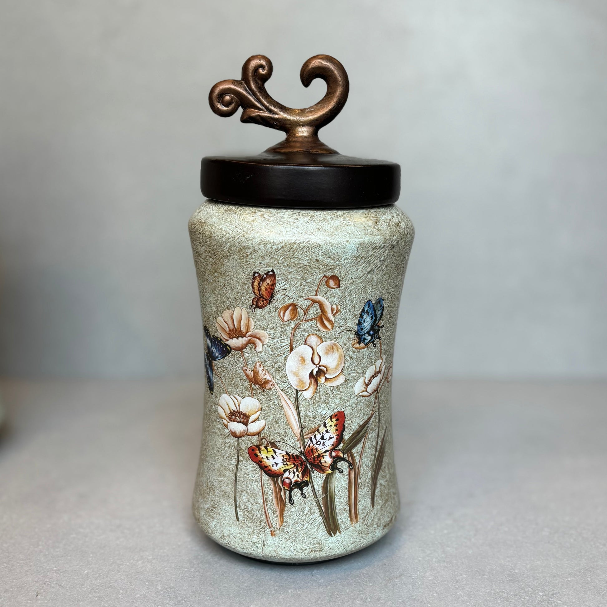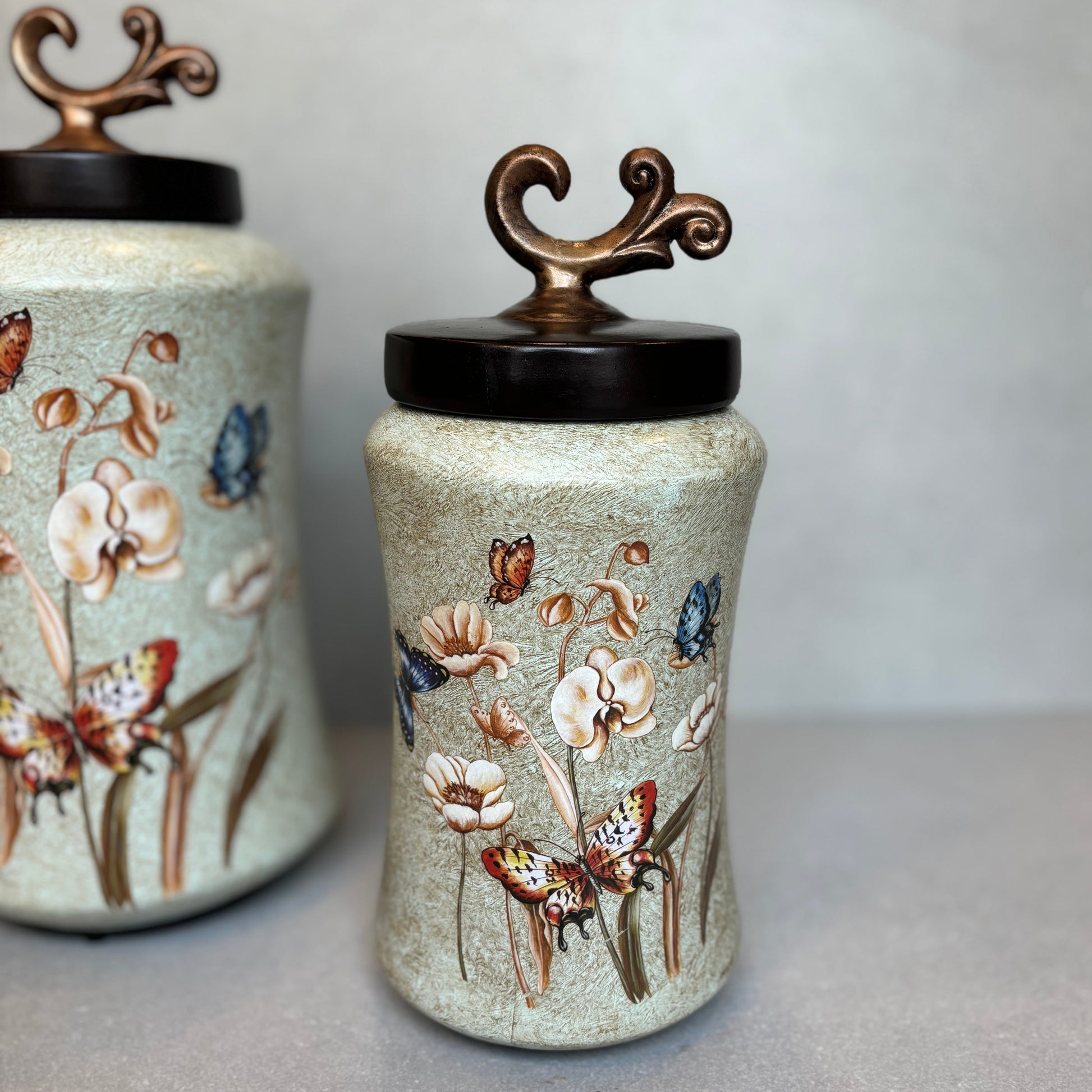 - Collector's Piece:Add some glamour and a touch of sparkle to your living space with our beautifully designed decorative jars. Our jars are the perfect accent pieces that can give your living spaces a fresh new look. You'll fall in love with this stunning piece that's decorated with intricate patterns and delicate butterflies. It's sure to bring charm and elegance to your home.
