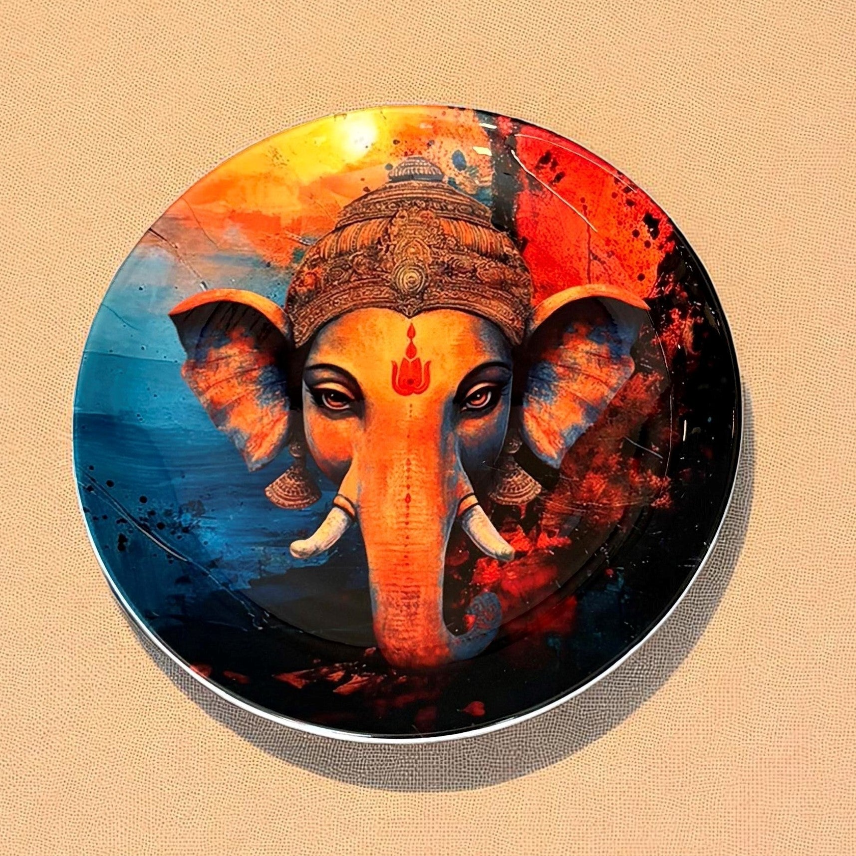 - Vibrant devotion: Bring a bold touch of colour and culture to your walls with this eye-catching ceramic wall plate. Featuring a modern, abstract take on Ganpati, the design mixes bright shades of orange, blue, and red with fine details to make a strong visual impact.