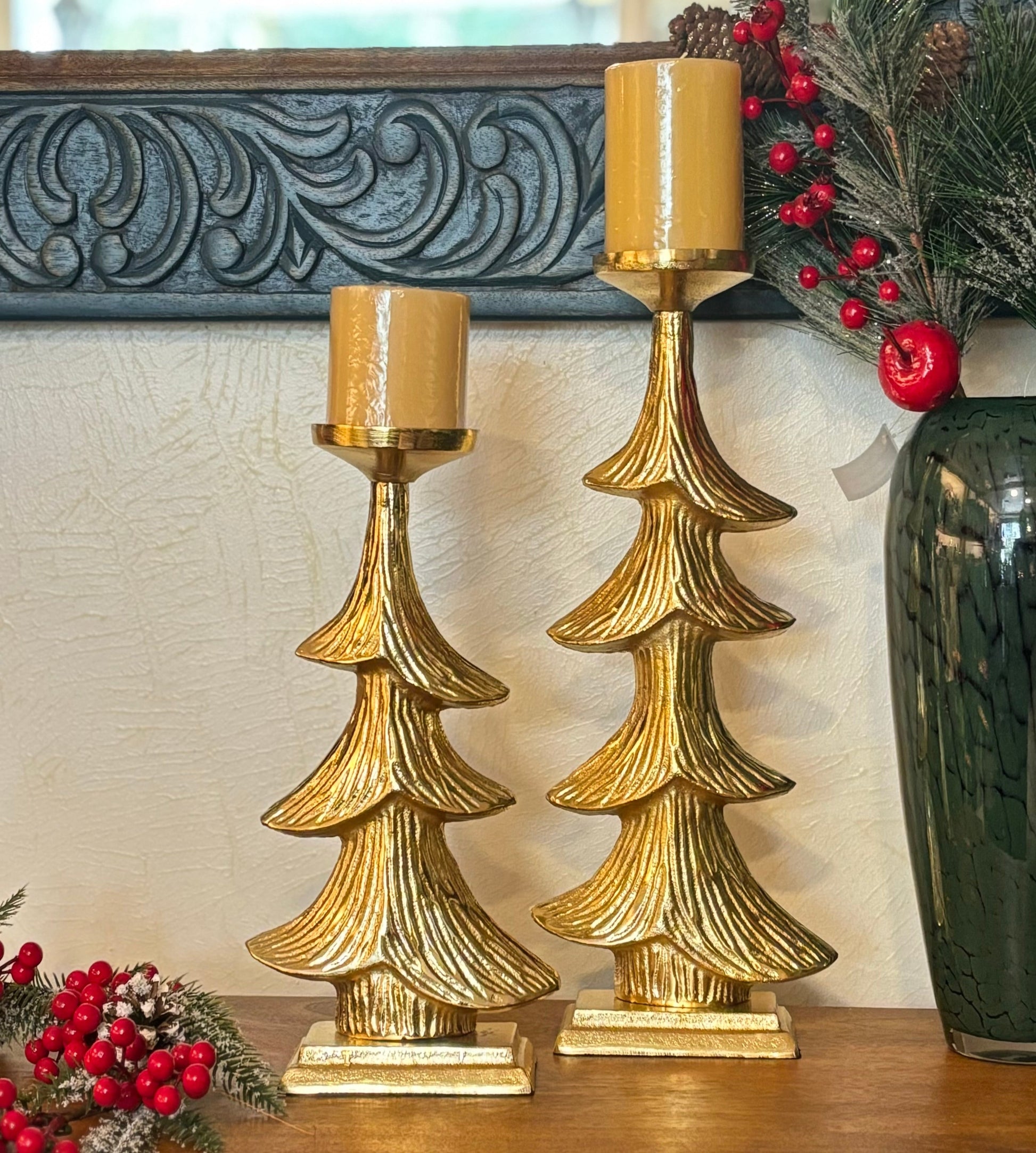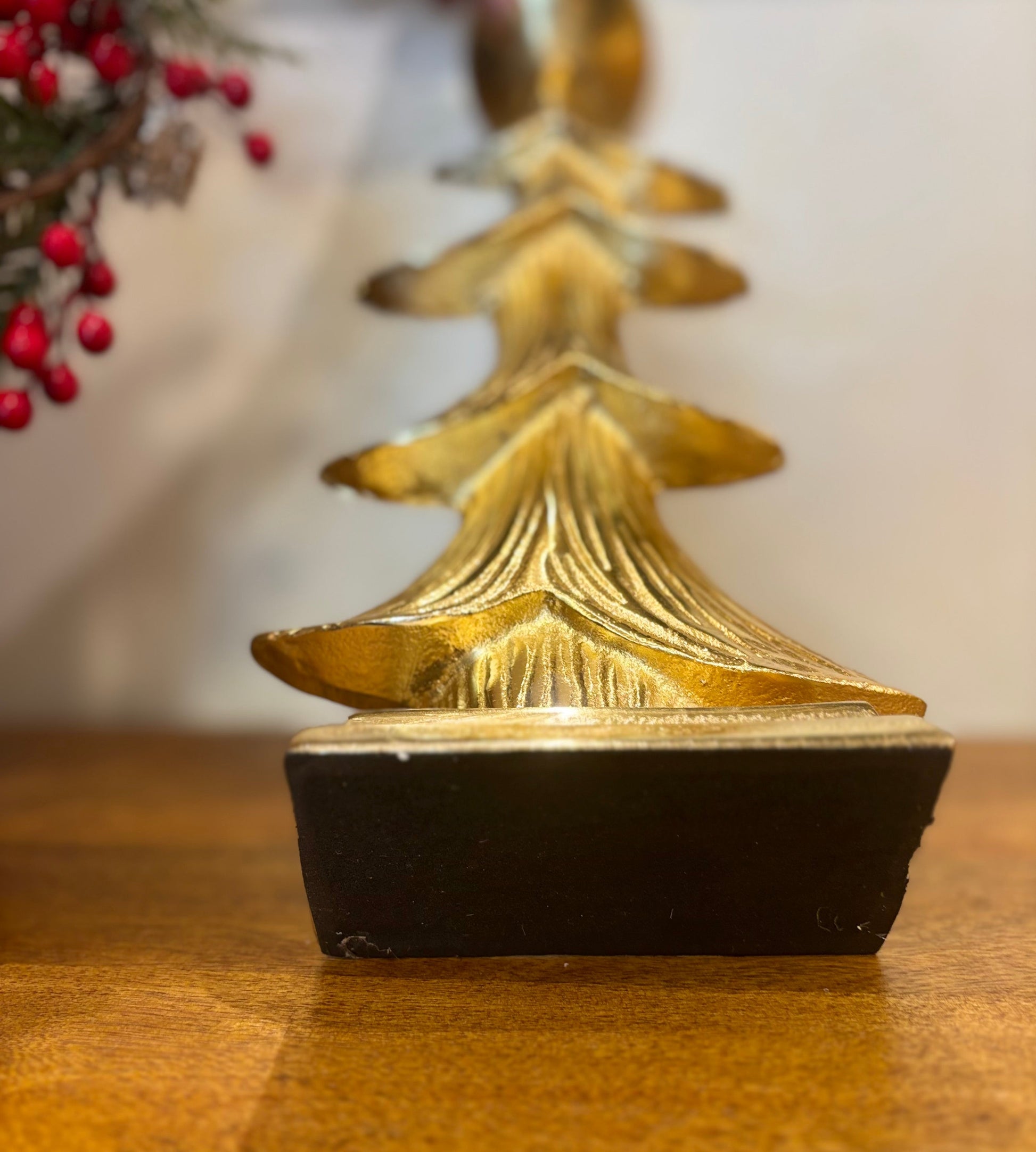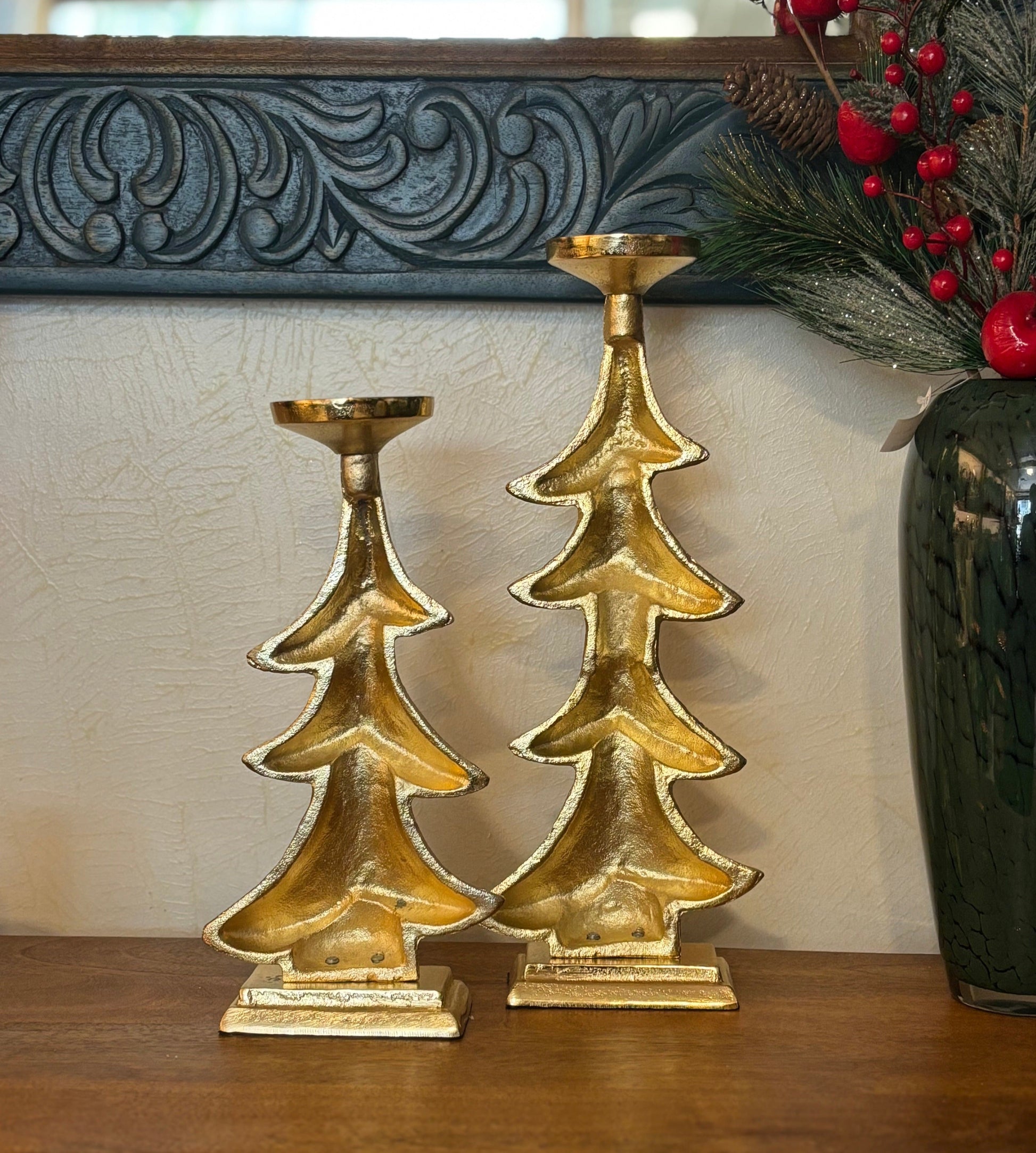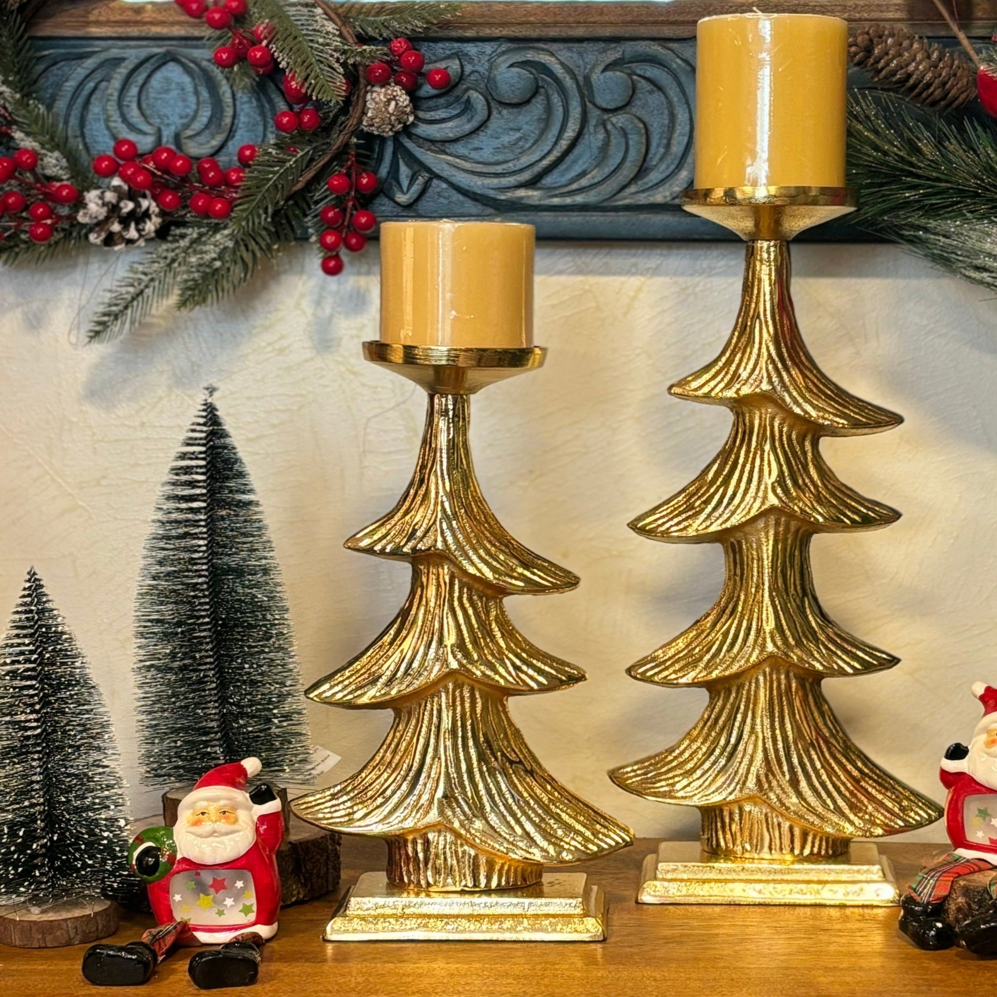 - Magical festive glow: Illuminate your home with enchanting radiance this Christmas season with our Gold Christmas Tree Candlestand. The candlestand features a sleek golden finish, resembling a miniature Christmas tree. Simply light the candles and watch as the twinkling candlelight dances through the intricate tree-shaped cutouts, casting a beautiful glow that brings warmth to your festivities.