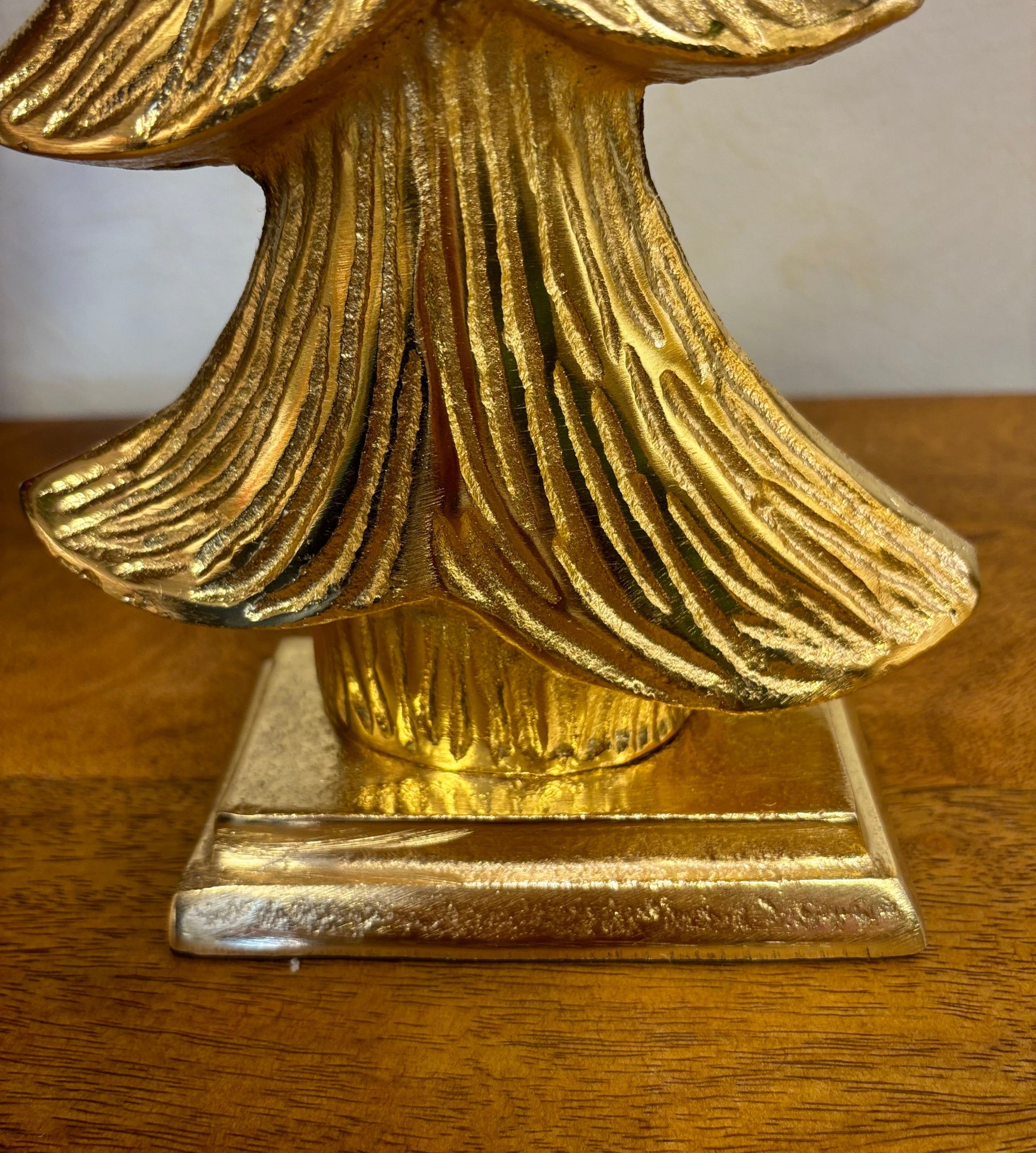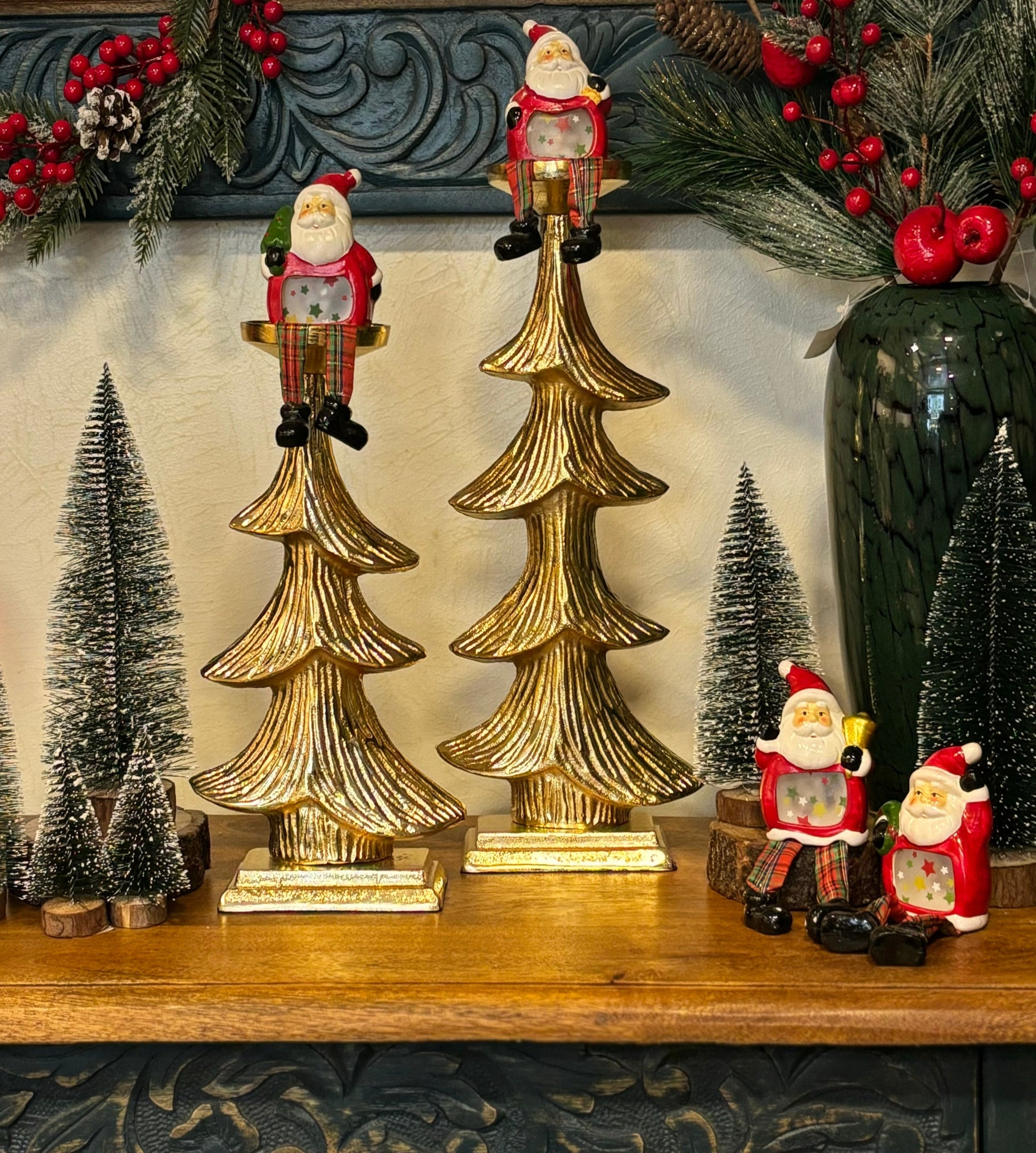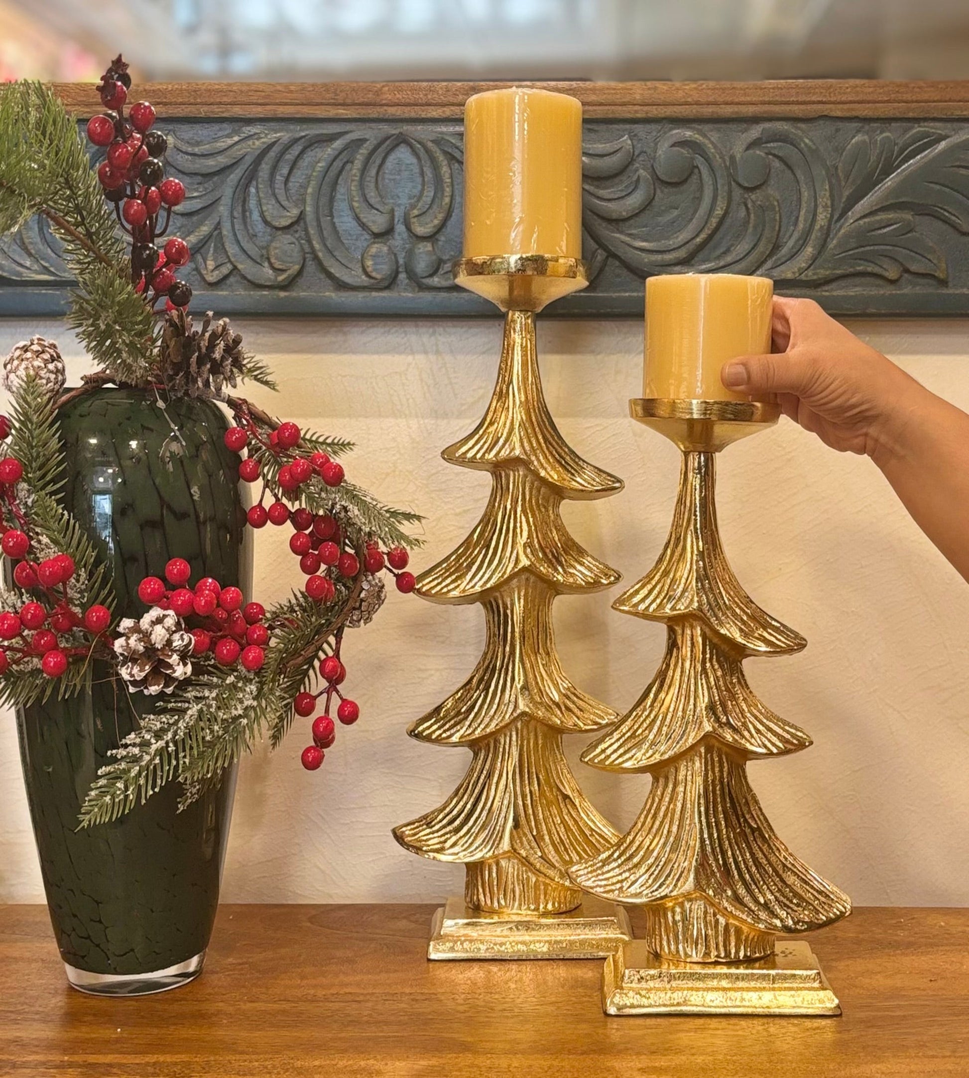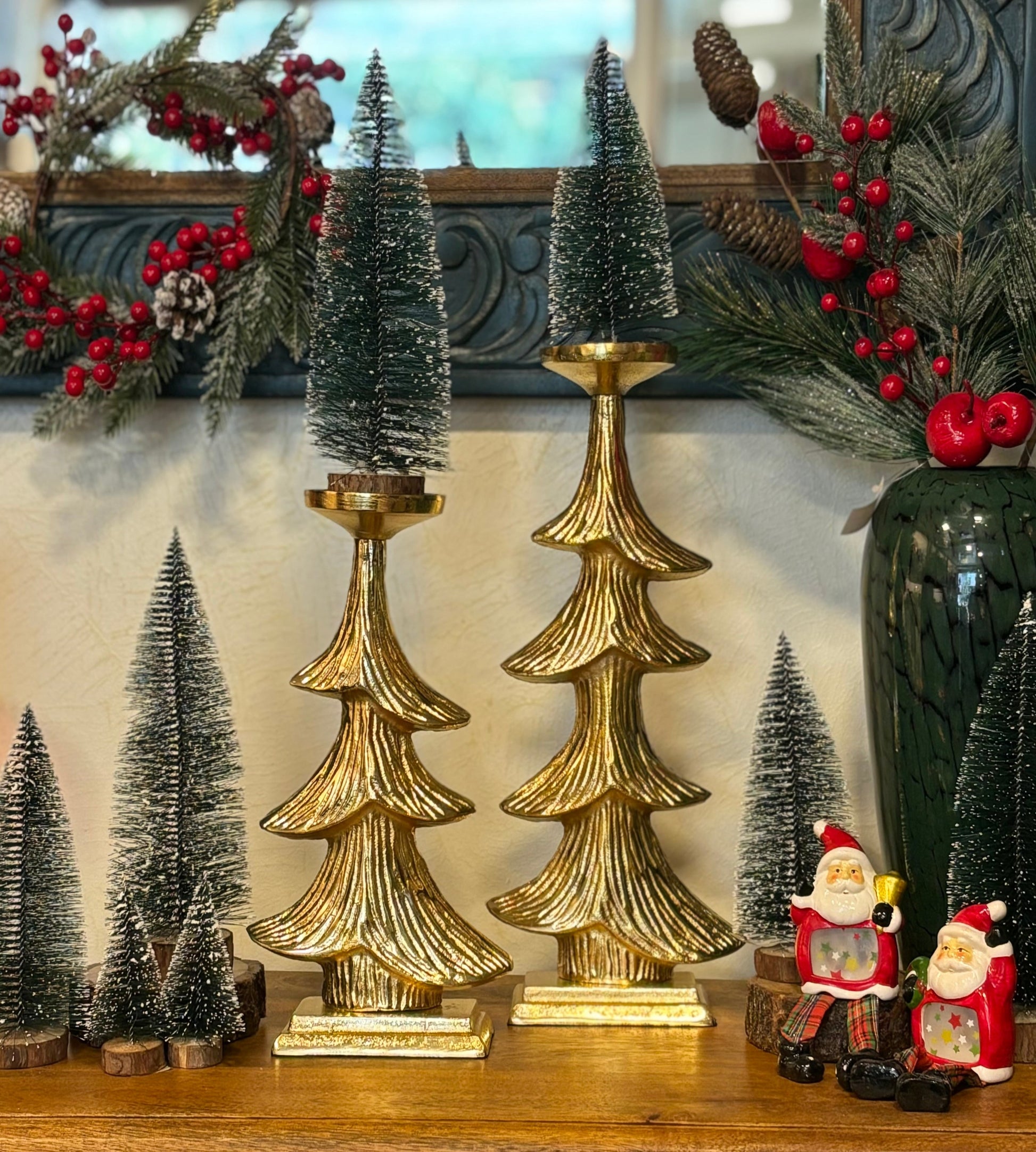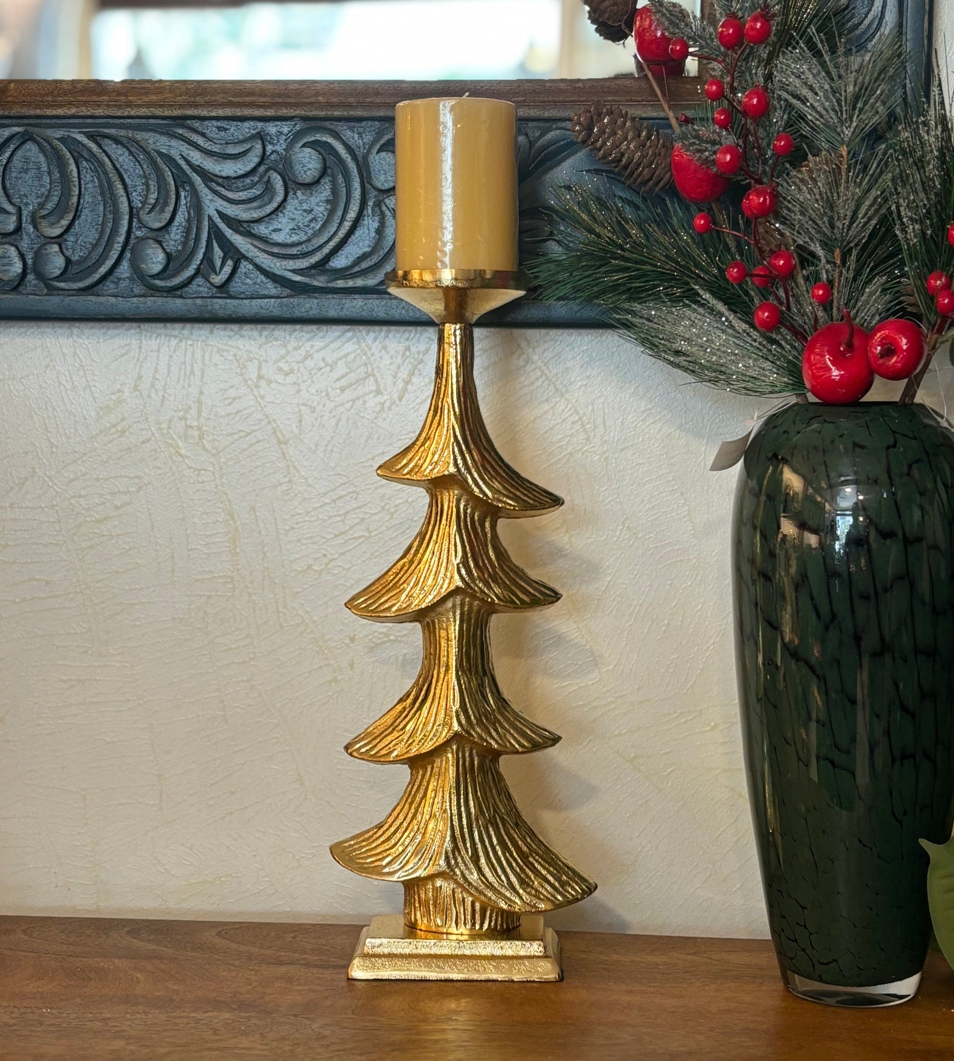 - Magical festive glow: Illuminate your home with enchanting radiance this Christmas season with our Gold Christmas Tree Candlestand. The candlestand features a sleek golden finish, resembling a miniature Christmas tree. Simply light the candles and watch as the twinkling candlelight dances through the intricate tree-shaped cutouts, casting a beautiful glow that brings warmth to your festivities.