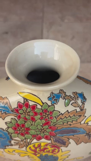 A Masterpiece of Colour & Craft: Bursting with bold florals and intricate patterns, this hand-painted ceramic vase brings the essence of heritage art into modern décor. Its rich palette of blues, reds, yellows, and greens creates an instant visual statement.