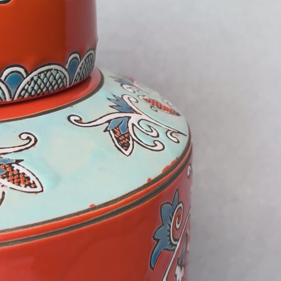 Handpainted Orange Ceramic Decorative Round Jar With Lid