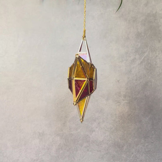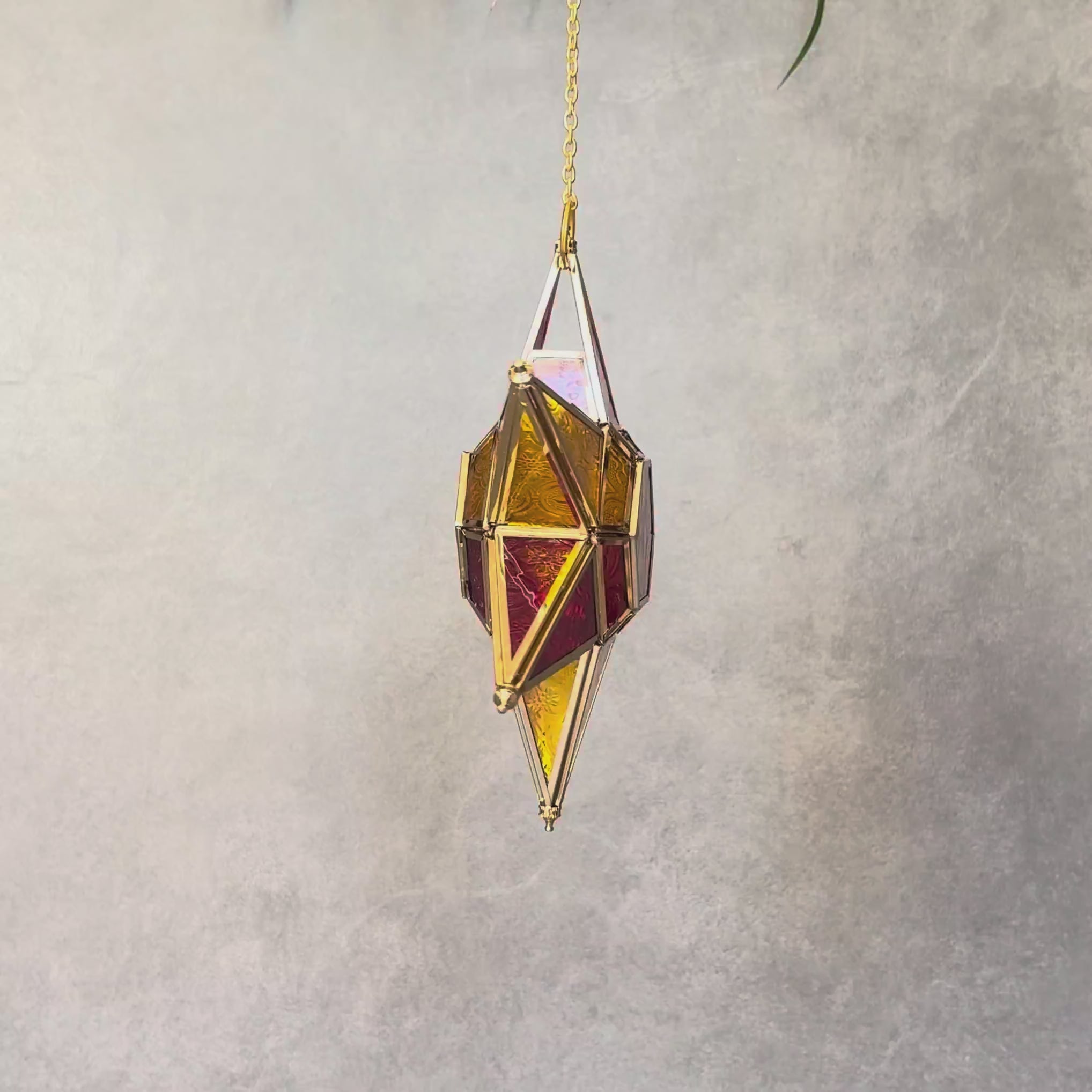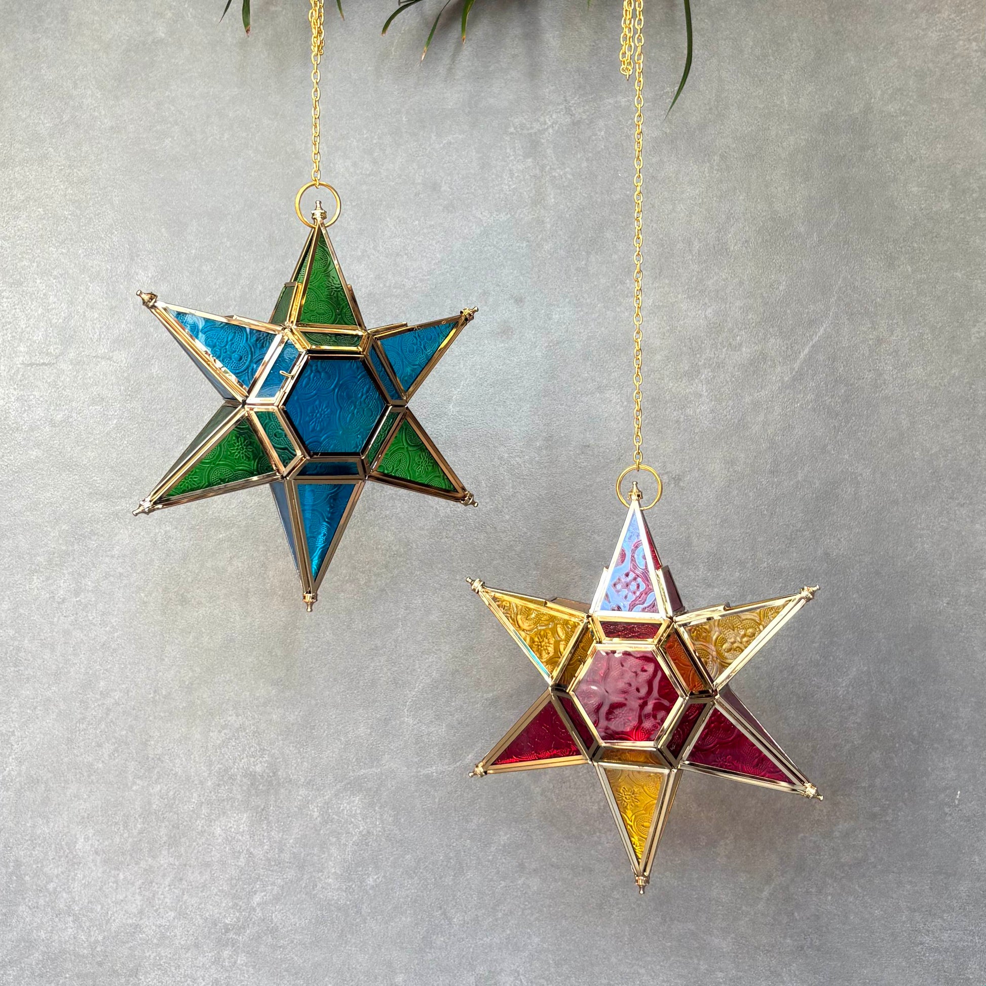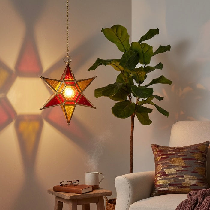 - Made to mesmerize: This star-shaped hanging lantern showcases vibrant red and amber stained-glass panels that reflect light beautifully. Whether you're styling it for boho décor, festive celebrations, or cozy mood lighting, it instantly adds charm to any space.