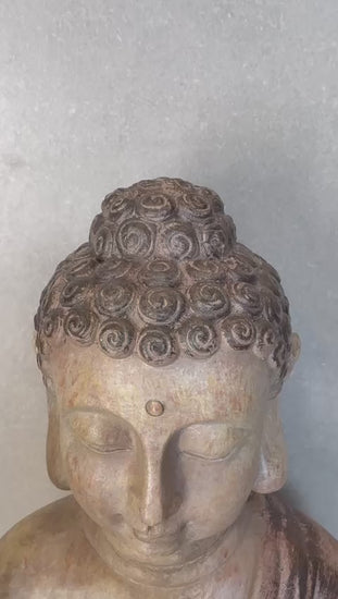Sacred Symbolism in Every Detail: Buddha seated in meditative posture, holds a blooming lotus, representing purity, renewal, and the rise above worldly chaos into spiritual clarity.