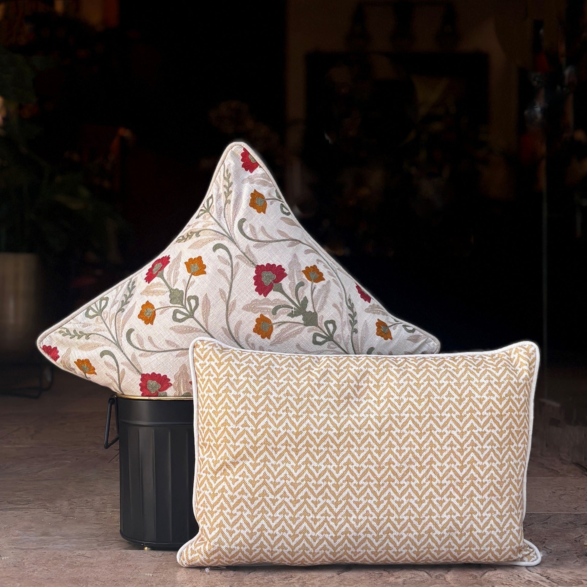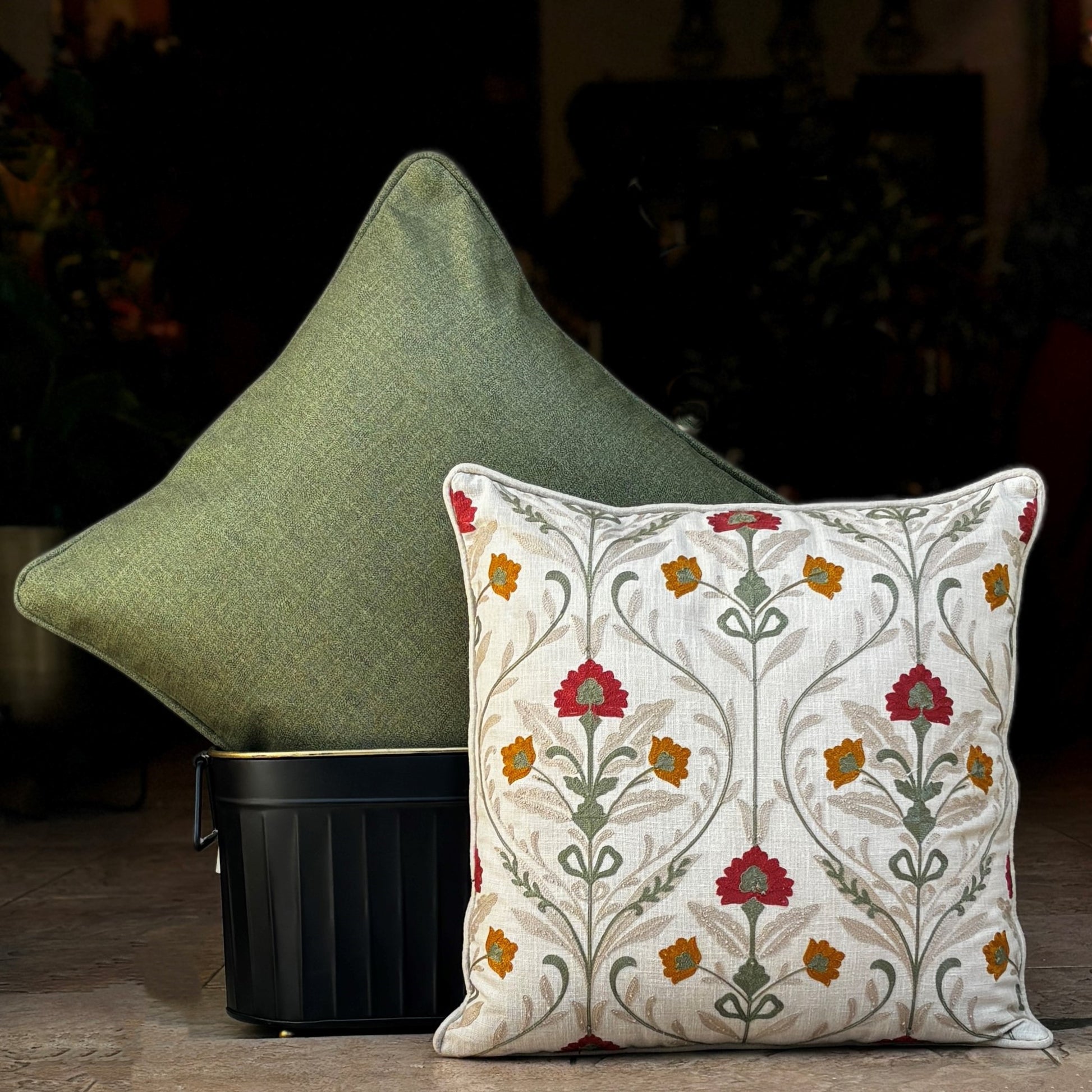- Pair it with: For double the elegance, combine it with our Solid Olive Green Velvet Cushion Cover 18X18, And Yellow Zig Zag Linen Cushion Cover 12 x 18.