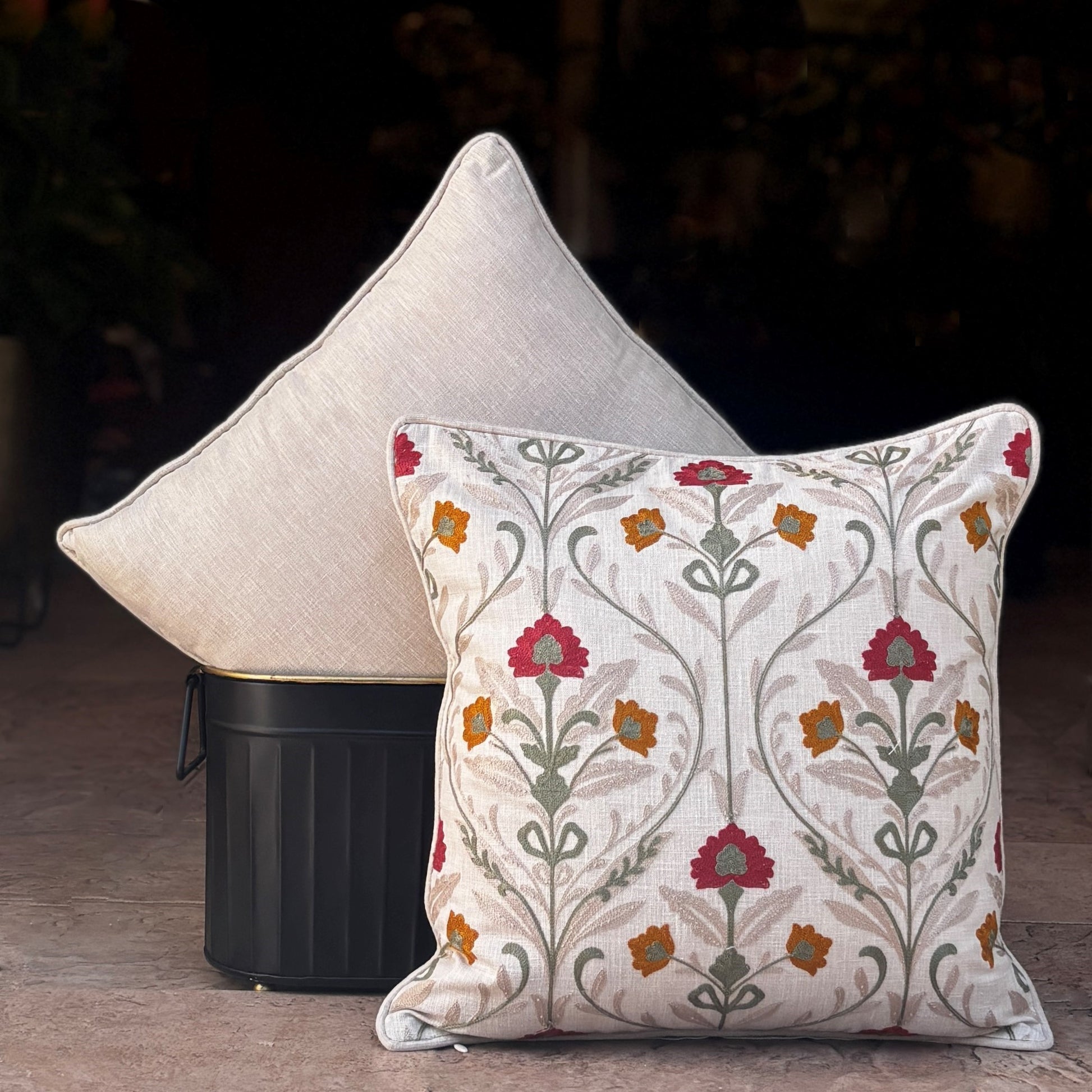 - Simple yet elegant: Create a warm and inviting atmosphere in your home with this charming Mughal Flower Cushion Cover each pillowcase is one-of-a-kind and exudes elegance. The 16 x 16 size makes it easy to pair with other throw pillows or incorporate into your existing decor. Add a touch of sophistication to your living spaces with this beautiful cushion cover today.