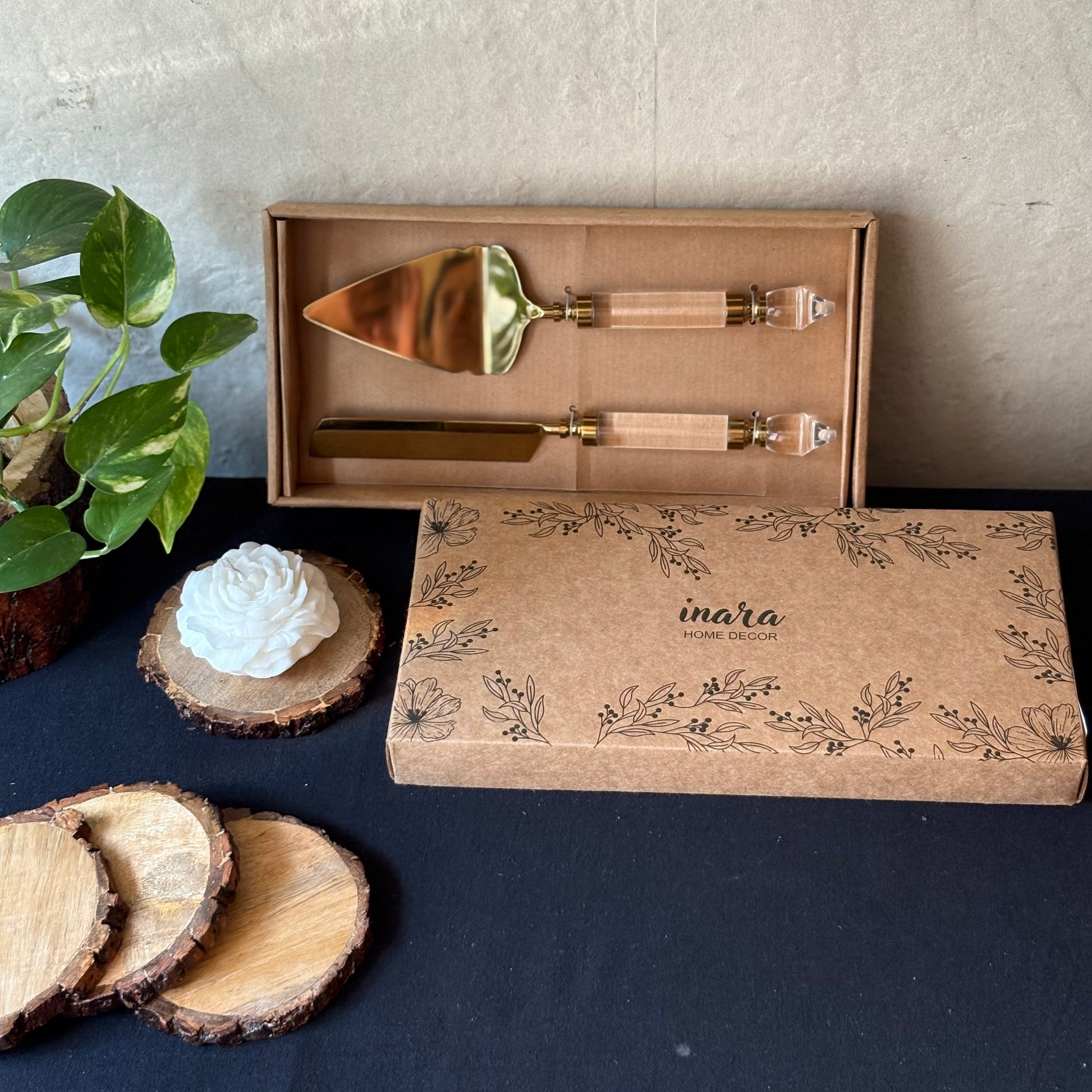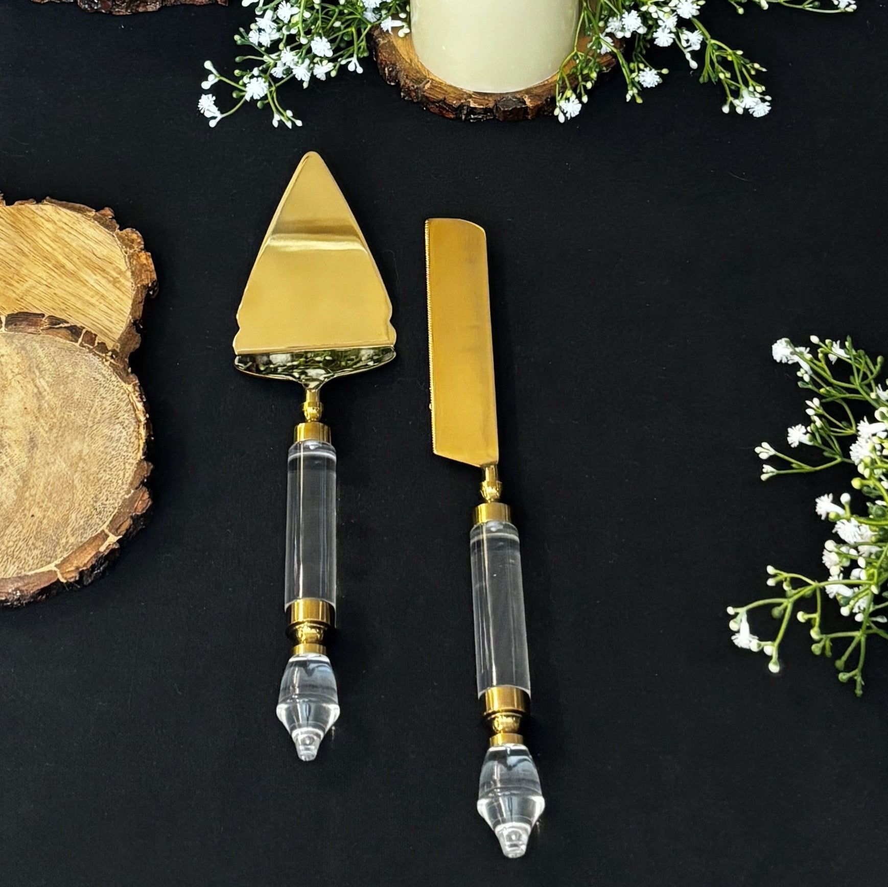Impress your guests: A great dinner begins with the right flatware and cutlery. Enhance the sophistication and style of your meals with our exquisite and luxurious opulent gold flatware. Proffering a set of cake knife & server to add those finishing touches with elegance.