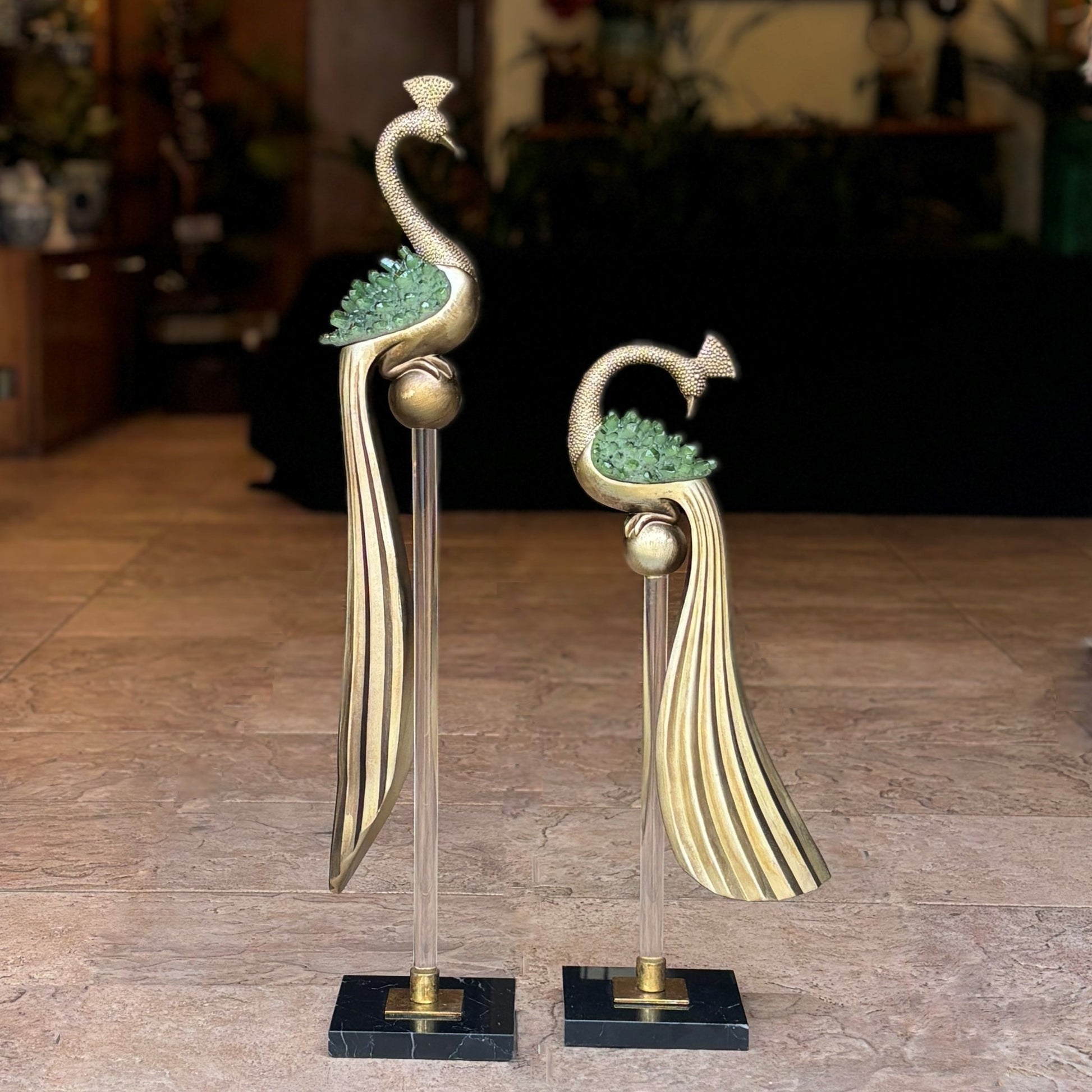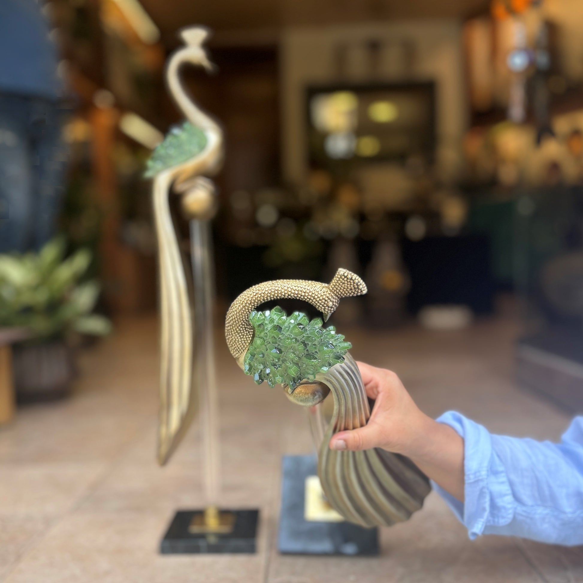 - Add a regal touch to your decor: This exquisite pair of royal peacock sculptures, elegantly mounted on a sturdy marble stand, showcases intricate craftsmanship and attention to detail. The vibrant design captures the majestic beauty of peacocks, making them a stunning addition to any decor.