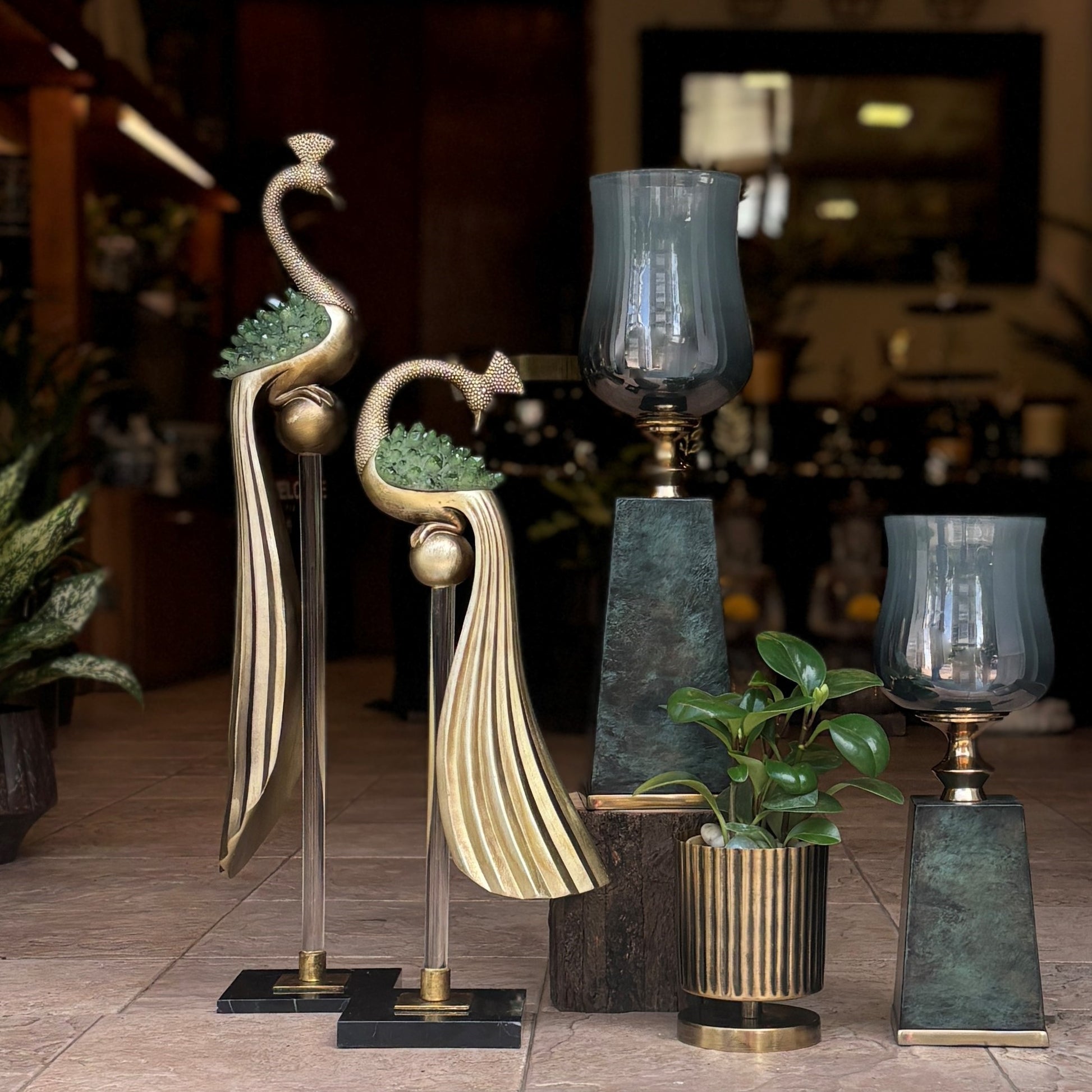 - Goes well with: The peacocks can be displayed with our Wooden Bark Planter/Base, or Modern Glass Candlestand for an eye-catching display.