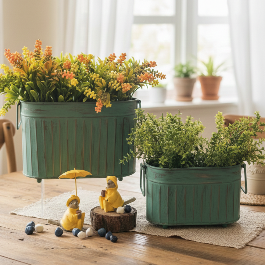 Elegant: Utilize our graceful and useful Rectangular Patina Planters to create a green area in your house. These planters are great for any use and come in two sizes with a beautiful powder-coating finish. These planters are an elegant addition to any indoor setting. Made of aluminum with powder coating, they are both lightweight and sturdy.