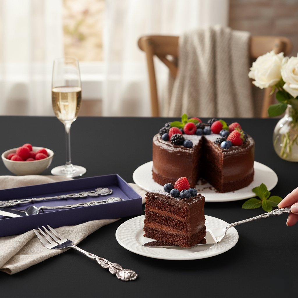- Impress your guests: Timeless elegance meets contemporary design in this British-inspired Rose Cake Server & Fork Set
