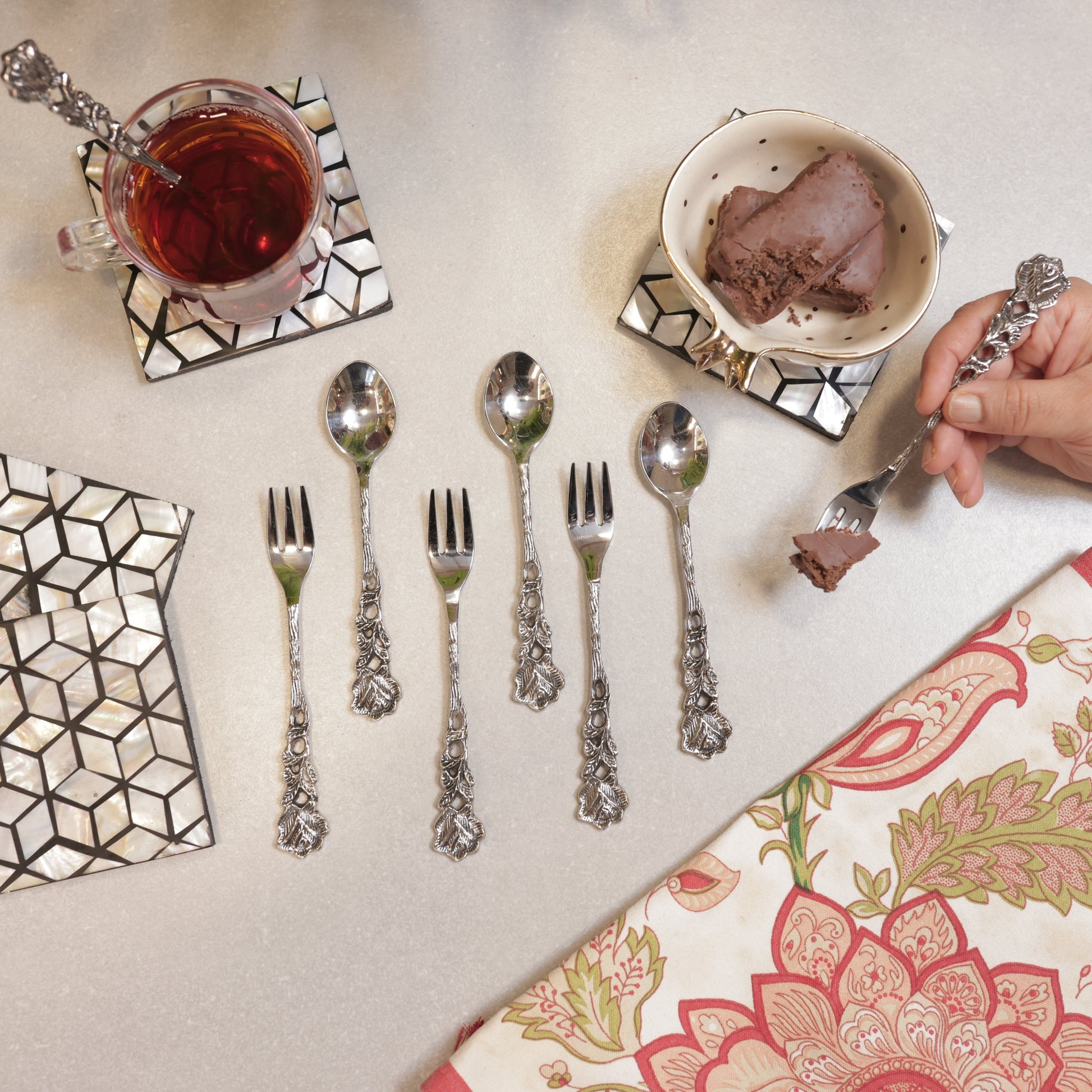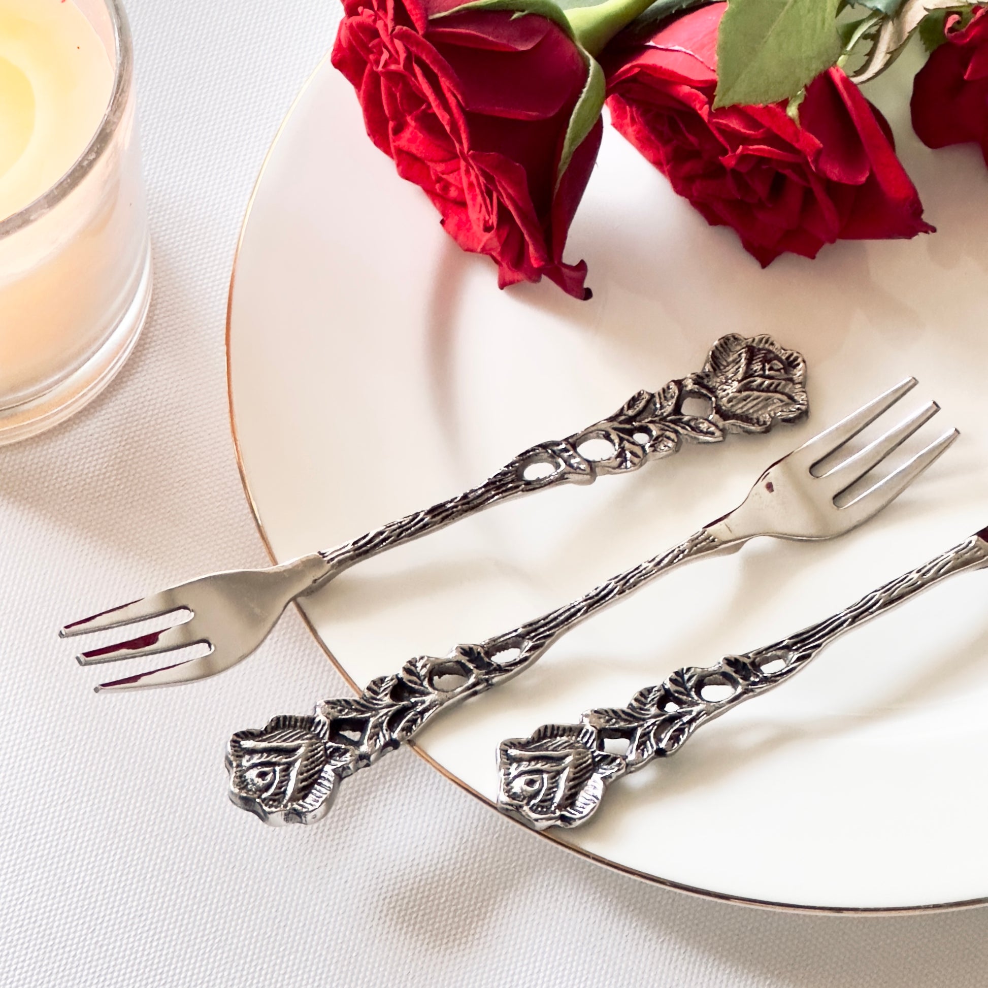 - Complete the collection: You can customize your set in this design by selecting the necessary quantities in each of these sets of Antique Rose Coffe Spoons, Antique Rose Table Spoons, Antique Rose Table Forks, Antique Rose Table Knives, and Antique Rose Cake Server And Fork.