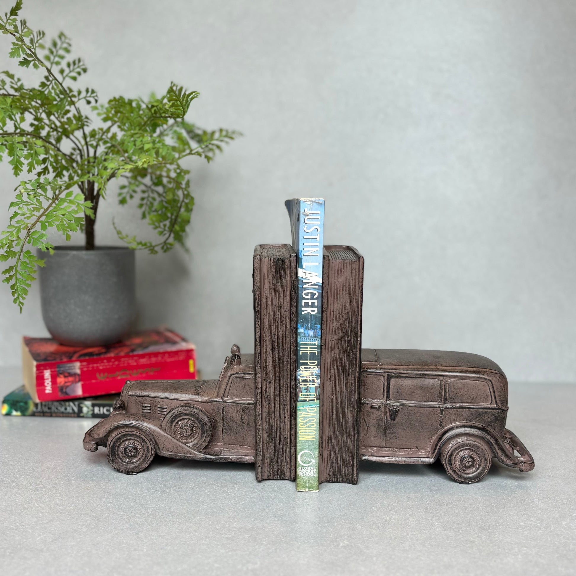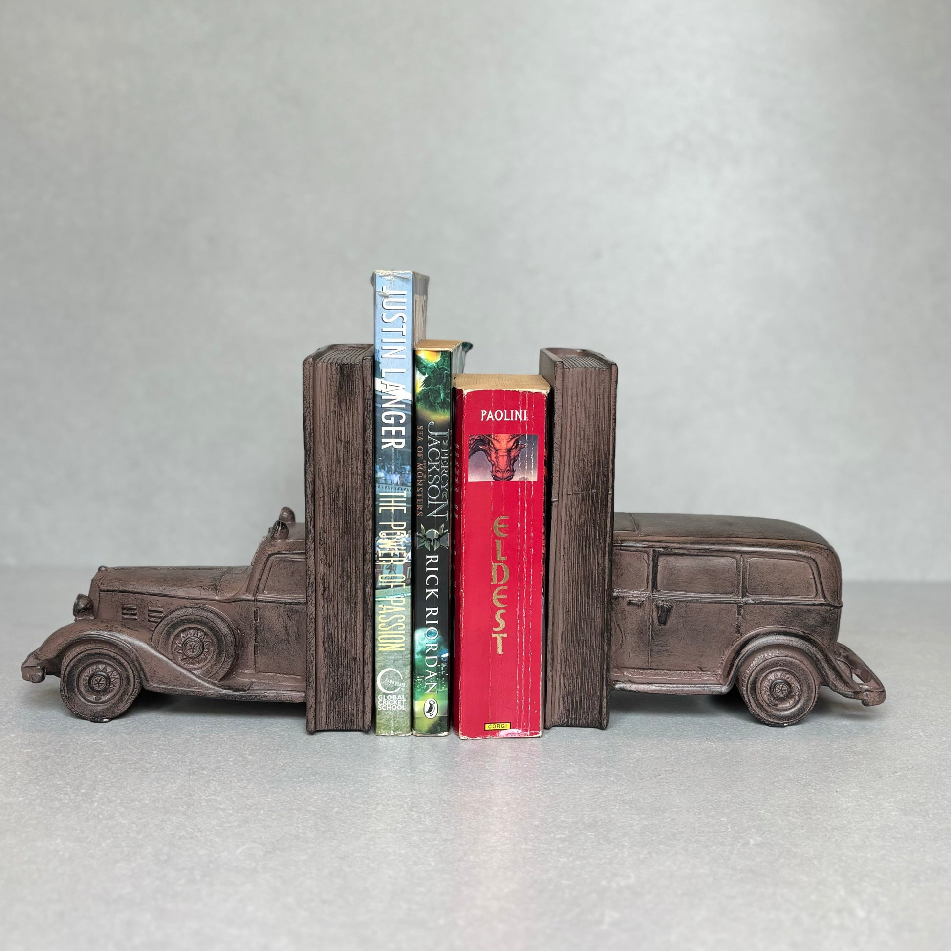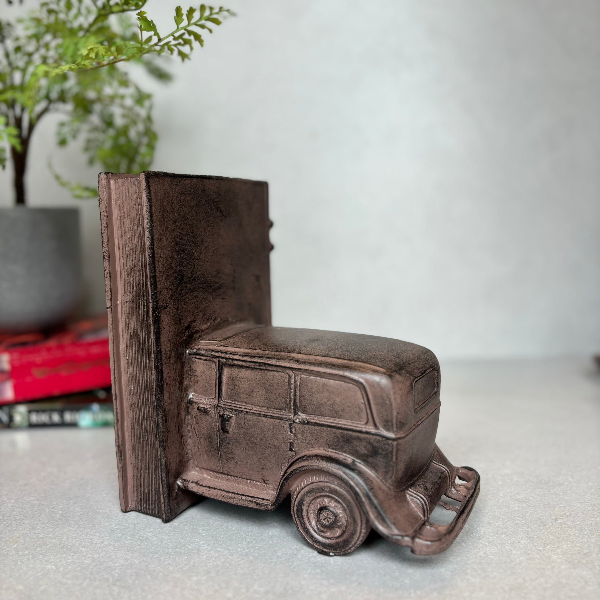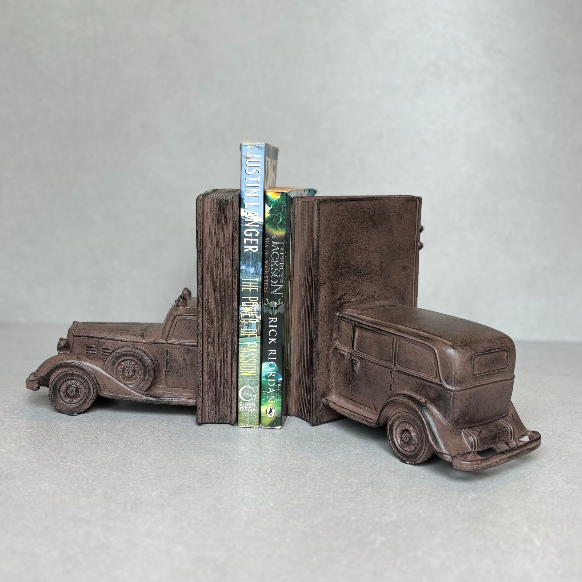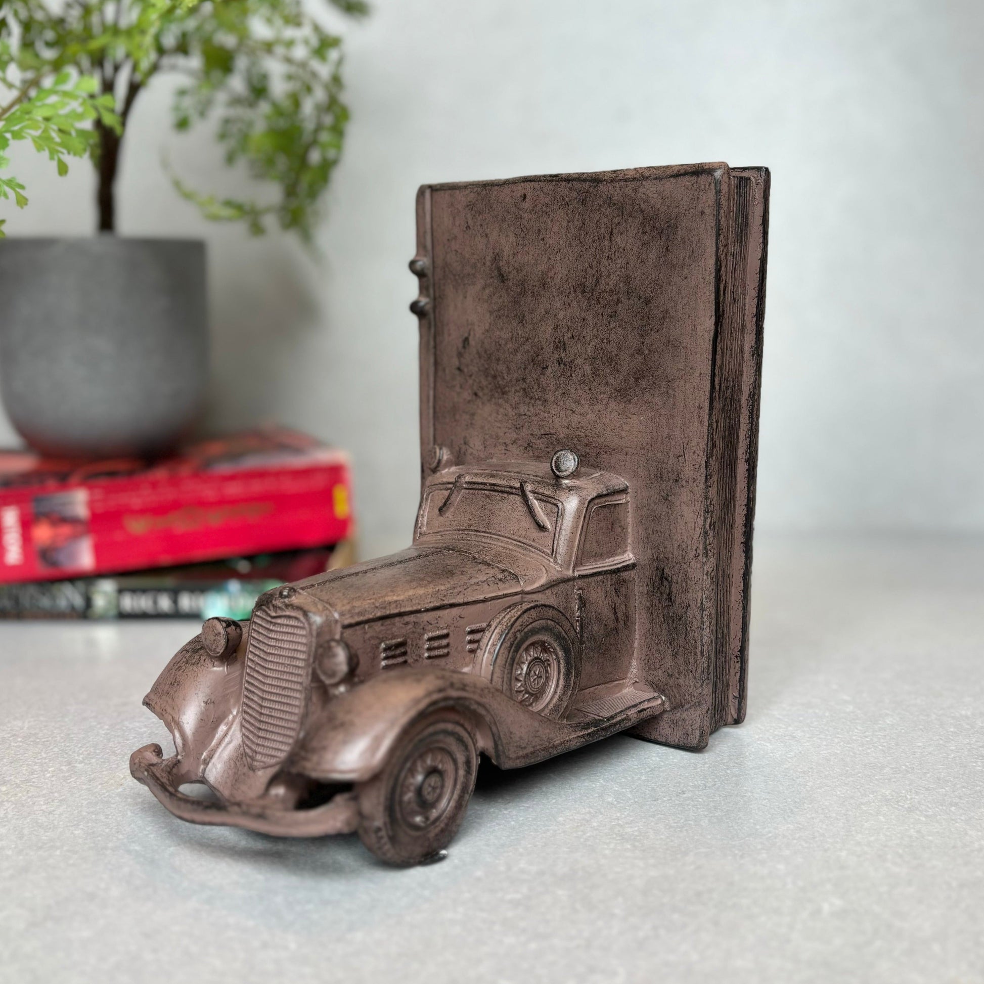 - Modern & Contemporary: This Vintage car decorative bookend is a touch of elegance to your shelves. Not only does it serve as a book stopper to keep your collection neat and organized, but it also doubles as a stunning decor piece. With sturdy support, this book holder will securely hold your books in place. Upgrade your home library with these stylish and functional bookends today!
