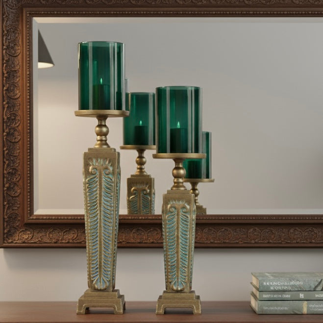 - Unique finish: This rustic patina candle stand, featuring colored glass, enchants with its intricate detailing. Meticulously crafted from premium aluminum with a glazed ceramic finish, it highlights the rich, natural warmth of patina tones. With its textured surface and vintage-inspired design, this piece exudes timeless charm, making it an elegant decorative accent for any space.