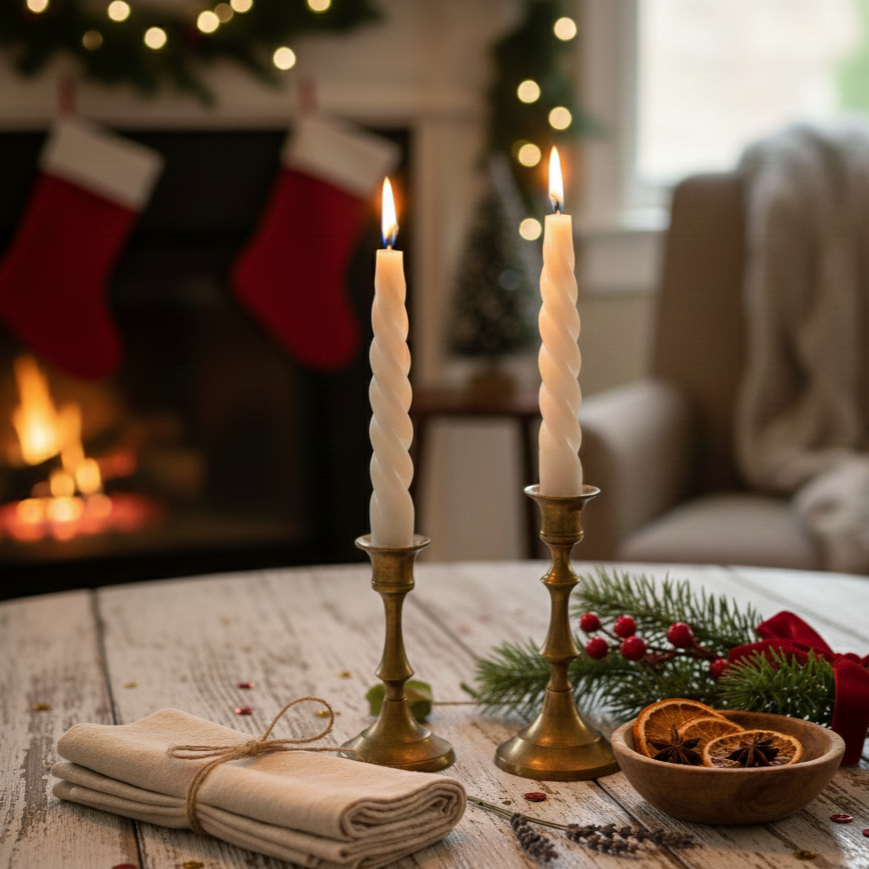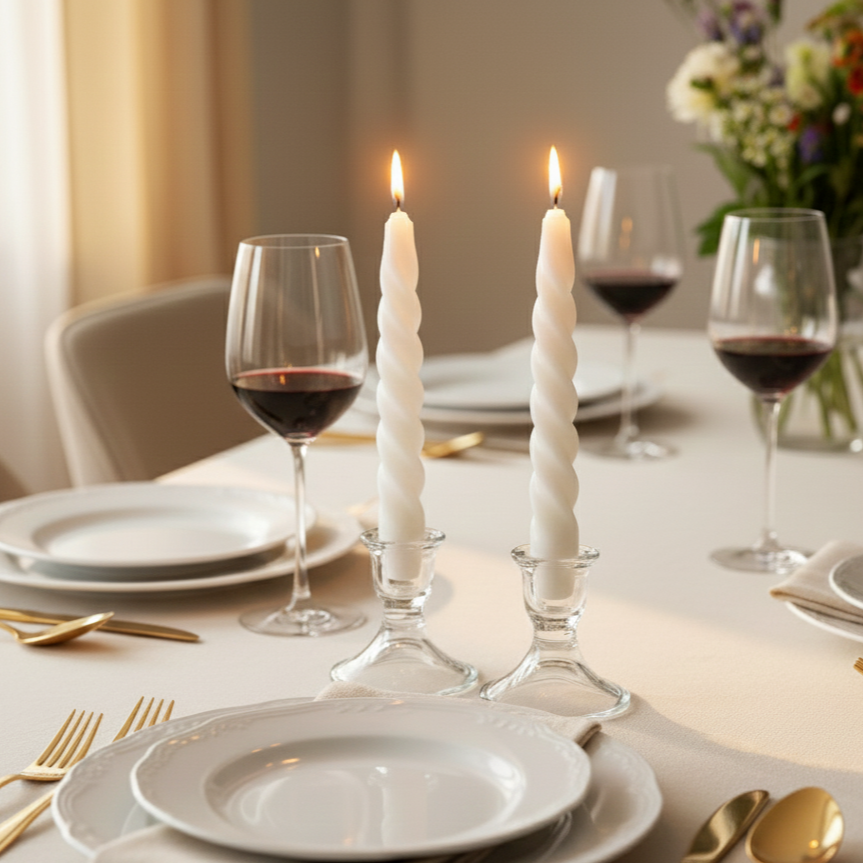 - Classic accessory: A beautiful home is complete with a lovely candle. Make this festive season swirled with happiness by lightning each corner to create the perfect ambiance with our White Vanilla Twisted Taper Soy Candle.
