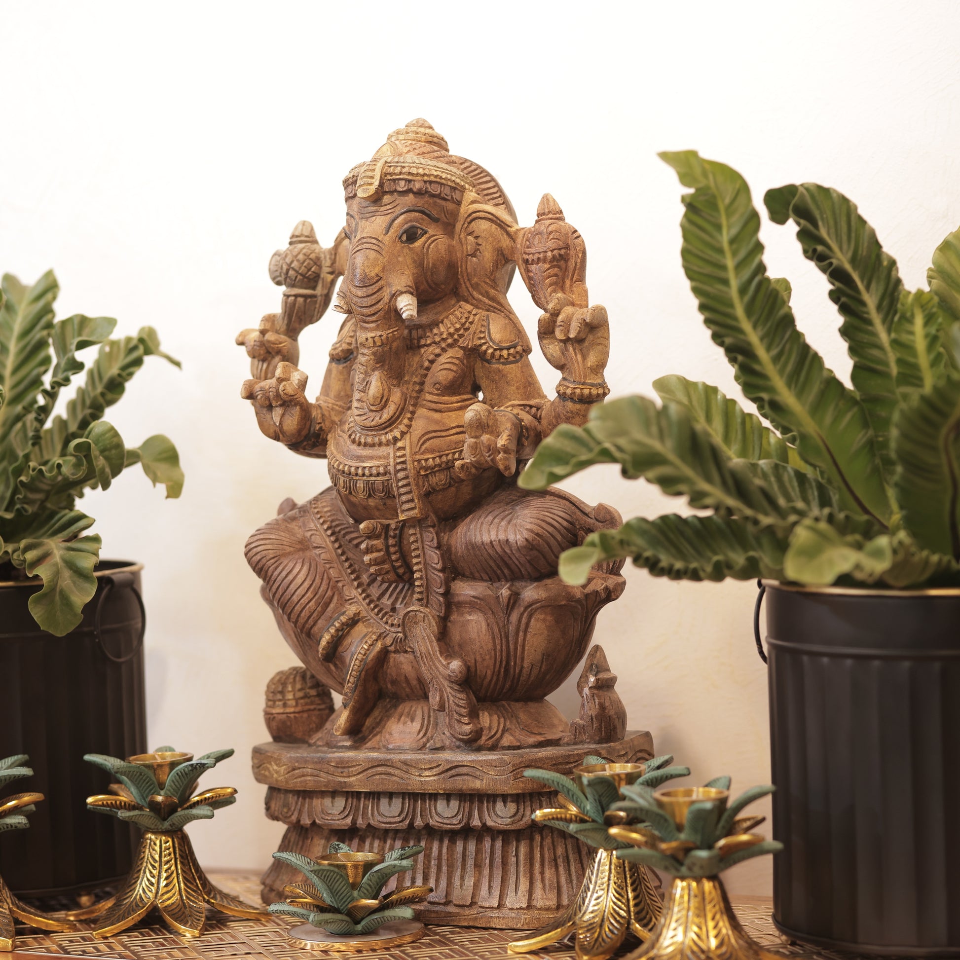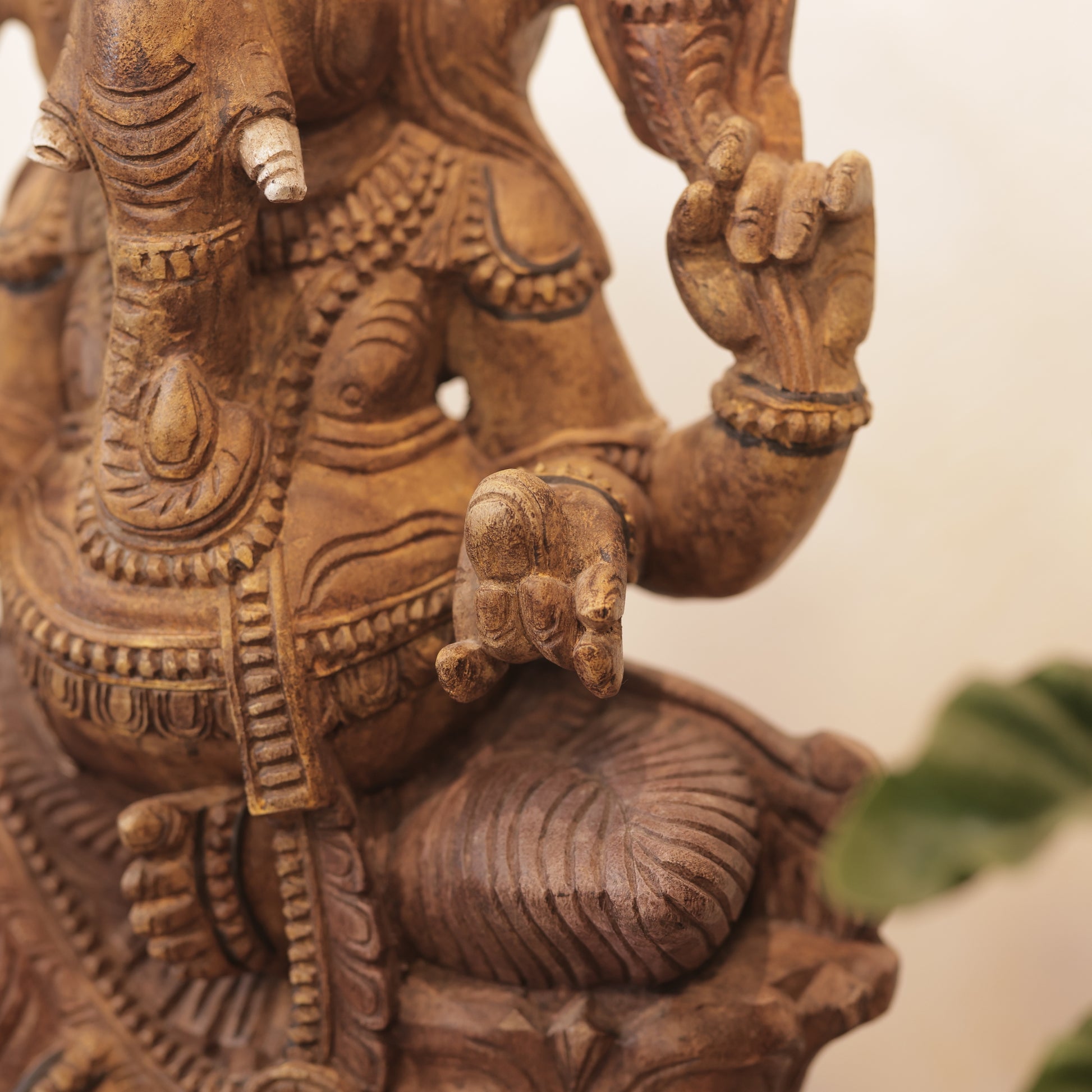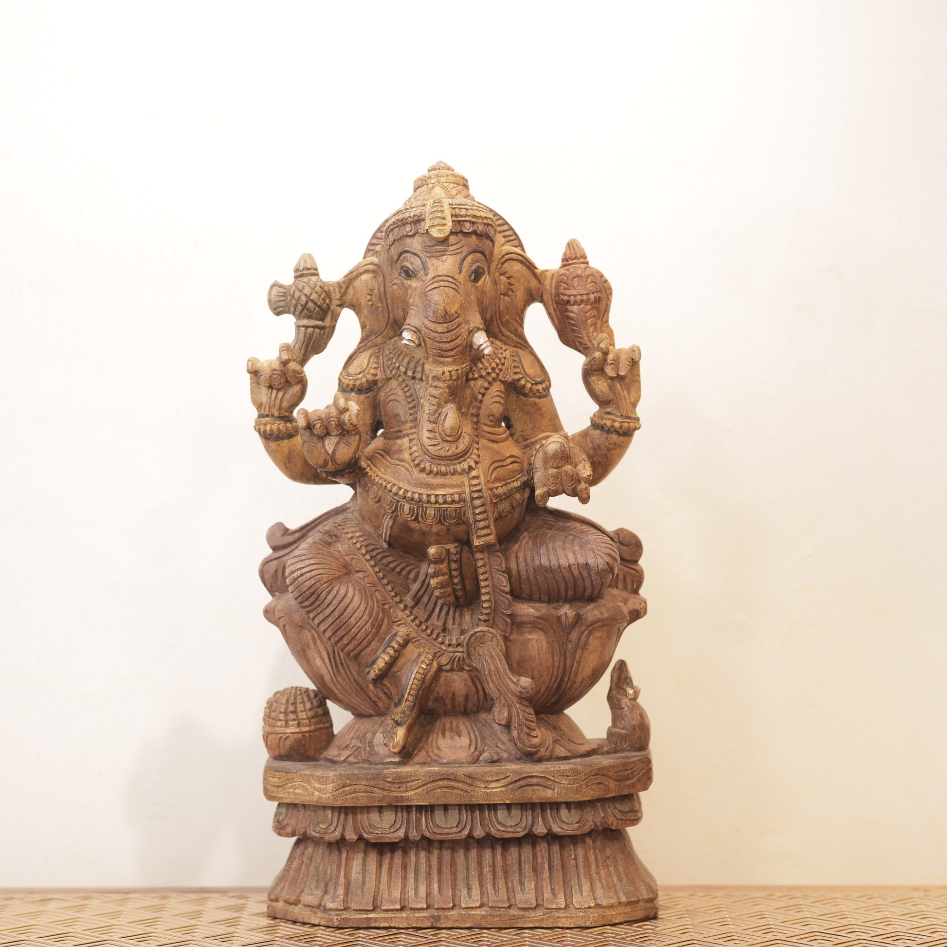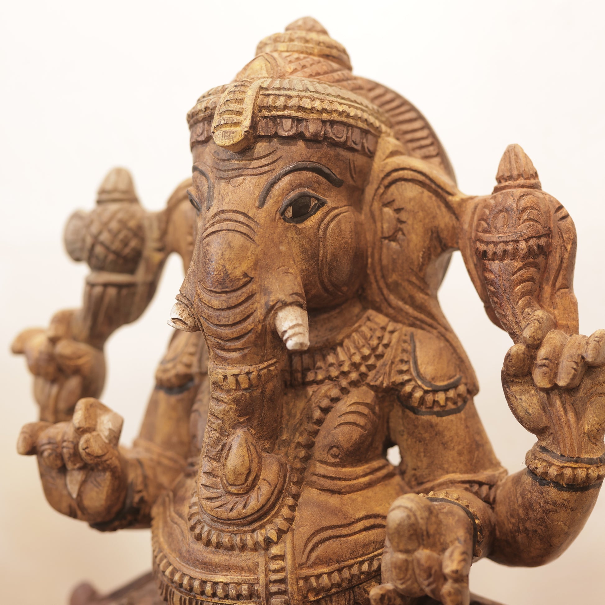 - Add divine charm: Embrace tranquility and elegance with this Ganesha Sculpture. Hand-carved in wood, its intricate details create a stunning and timeless work of art. Let this enchanting sculpture be the centerpiece of your home, inviting spiritual significance into your space.