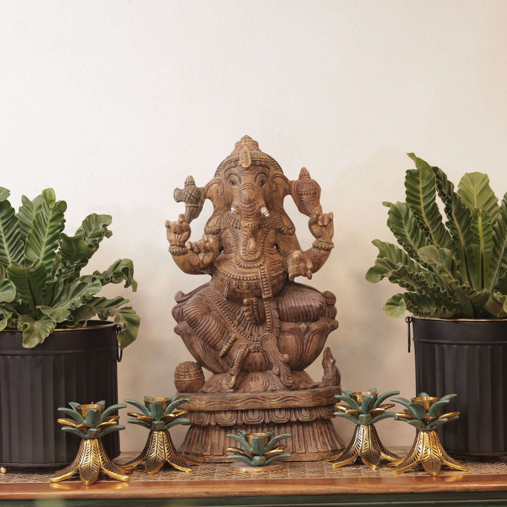 - Shop the look: Display the Ganesha with our Round Ribbed Metal Planter, Vintage Leaf T-Light Candle Stand, and Vintage Leaf T-Light Candle Stand Holder Small for an impressive visual look.
